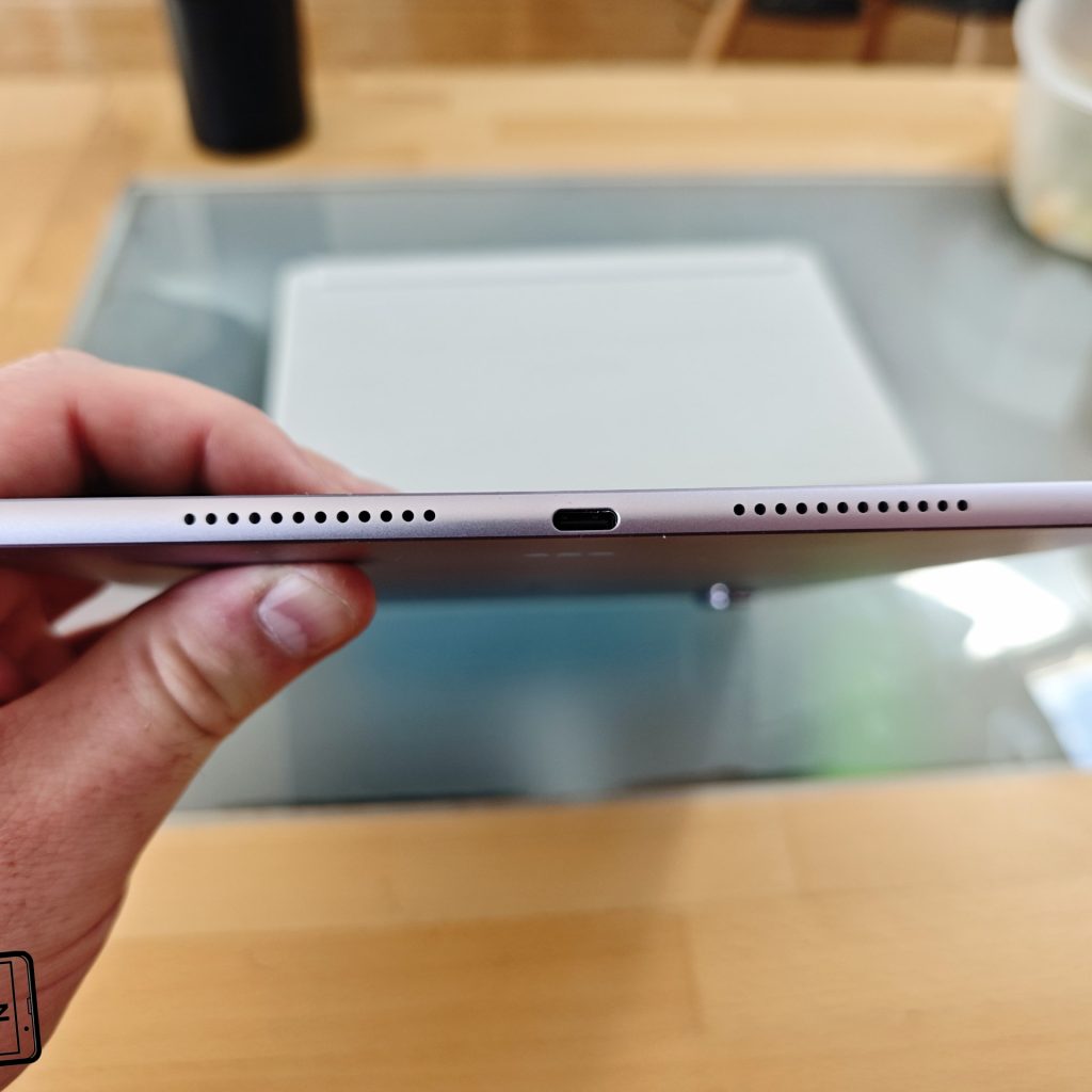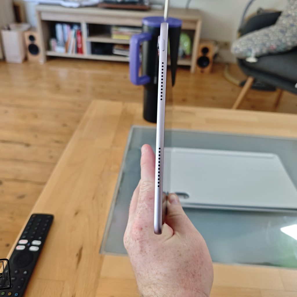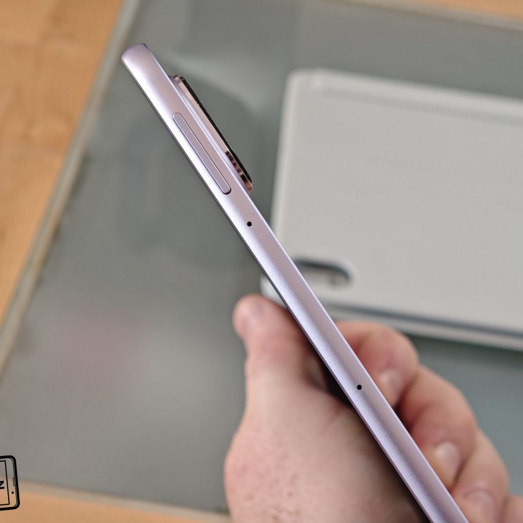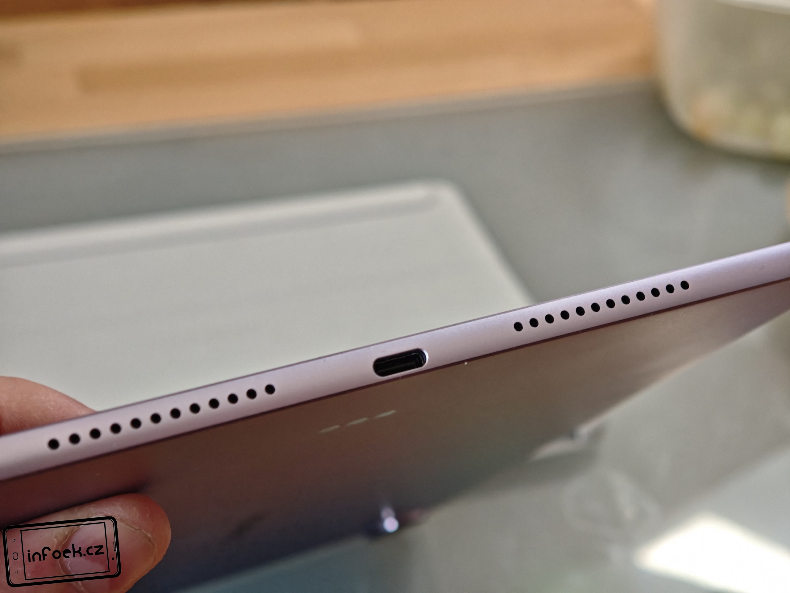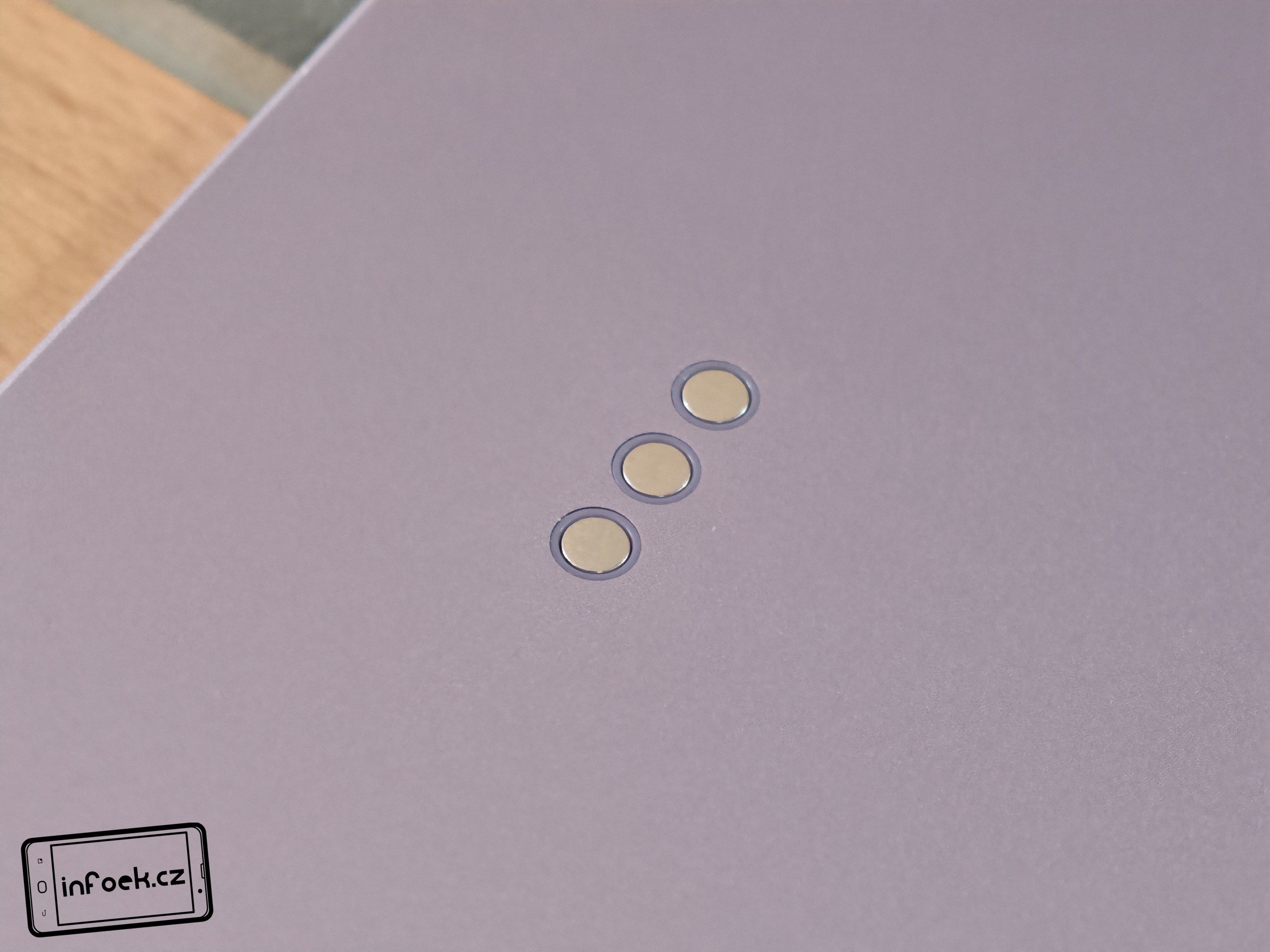 Testovaný kus jsem měl ve fialovém provedení. Barva není nijak výrazná – spíše jemný nádech fialové, který působí elegantně. Pokud nejste fanoušky tohoto odstínu, k dispozici je také varianta ve vesmírně šedé barvě. Obě verze jsou krásné tenké a celkově rozměry činí: 177,53 x 262,63 x 6,1 mm a váží jen 515 gramů.