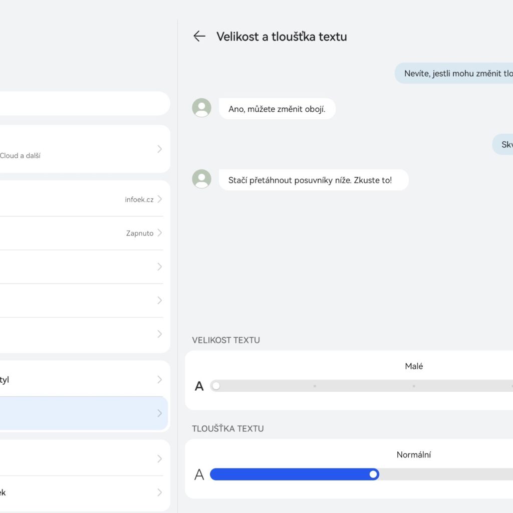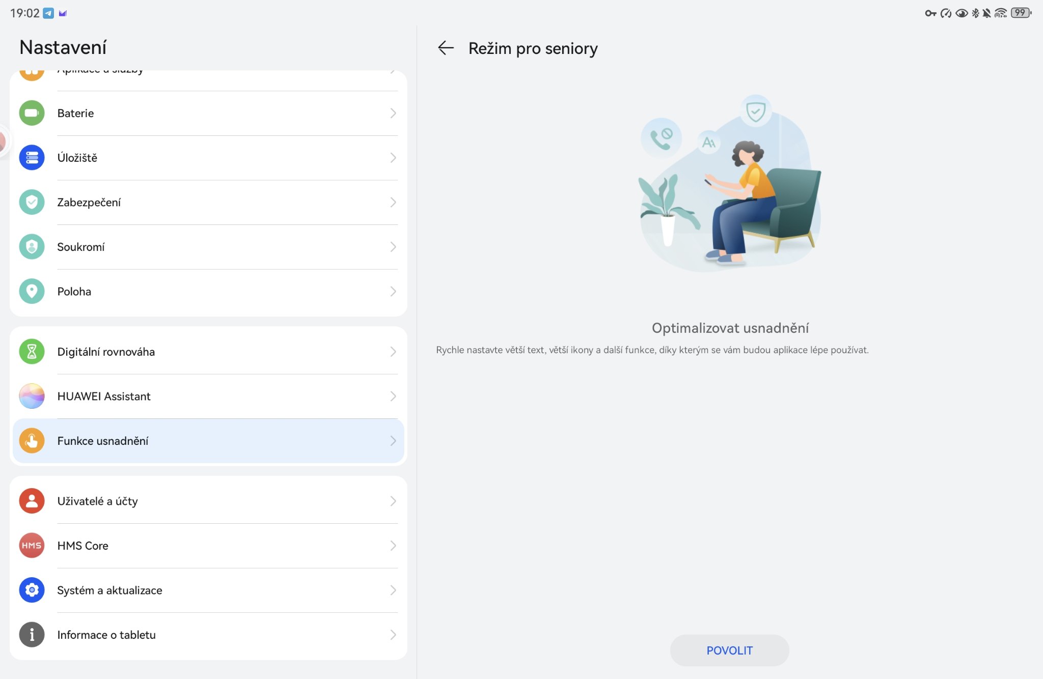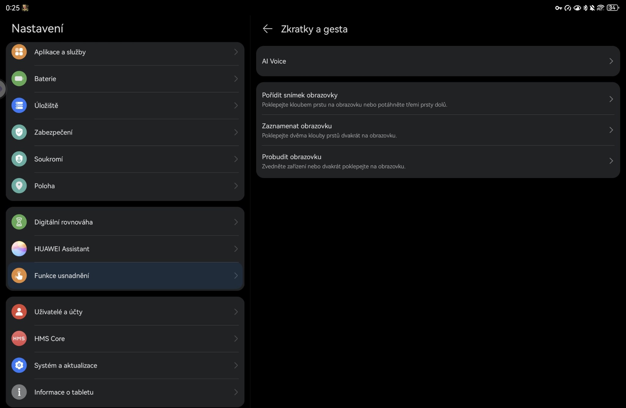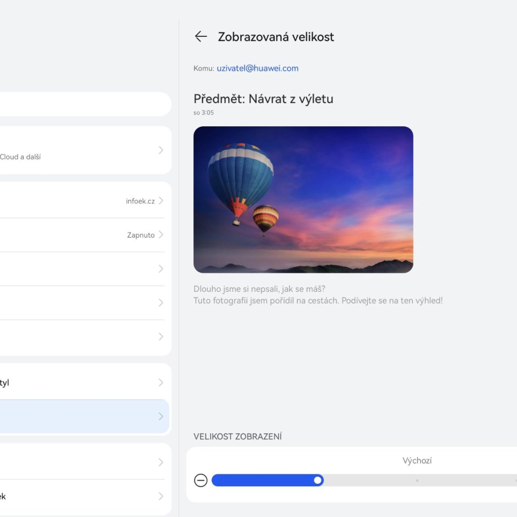 Některé funkce pro efektivnější práci si navíc můžete sami přizpůsobit. Stačí přejít do Nastavení/Funkce usnadnění. Zde lze nastavit ovládací gesta, práci s více okny, funkci SuperHub pro odkládání nejen aplikací do bočního panelu, ovládání dotykového pera, externí myši nebo klávesnice. Po prvním spuštění tabletu doporučuji připojit zařízení k Wi‑Fi a provést aktualizaci nejen systému, ale i firmwaru klávesnice a pera. Dále doporučuji otevřít nabídku „Rozložení klávesnice“ a nastavit možnost „České“.