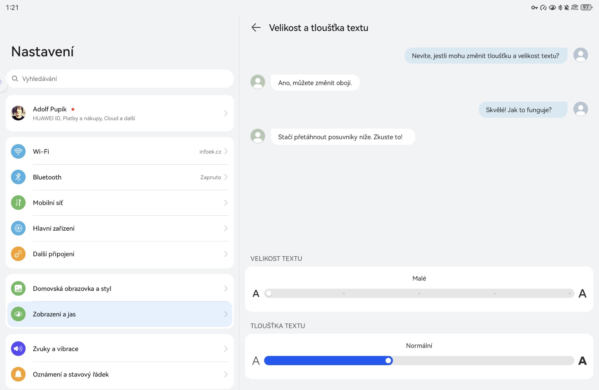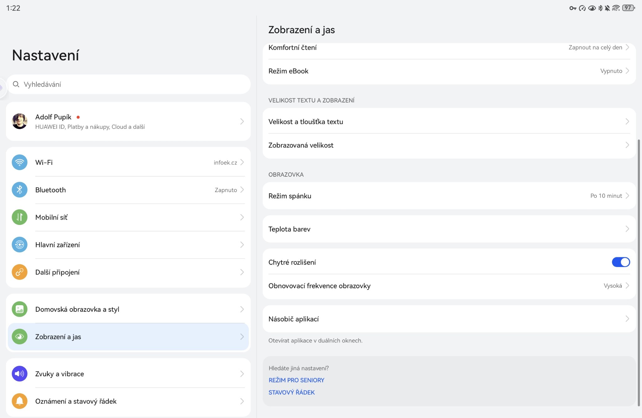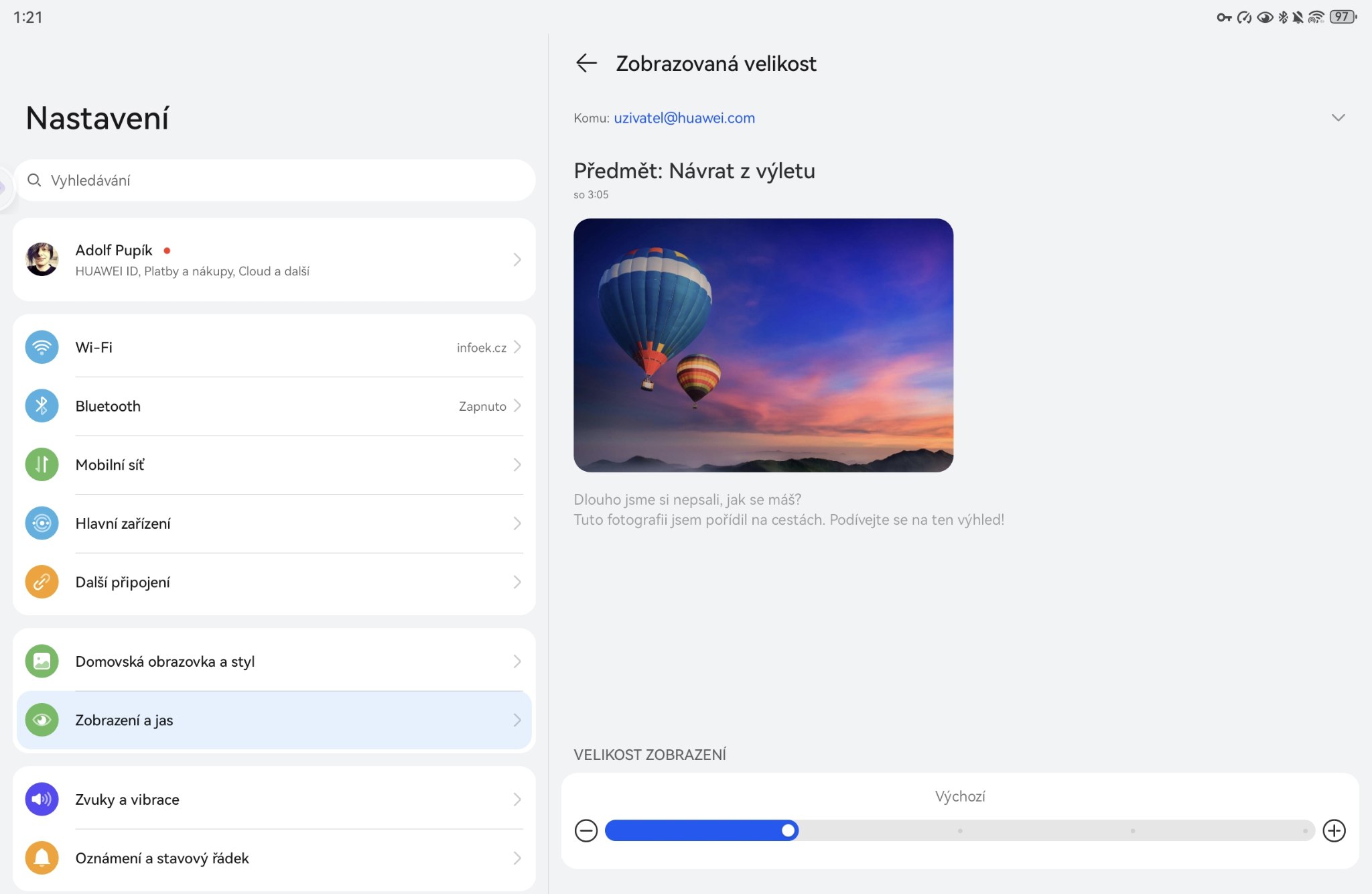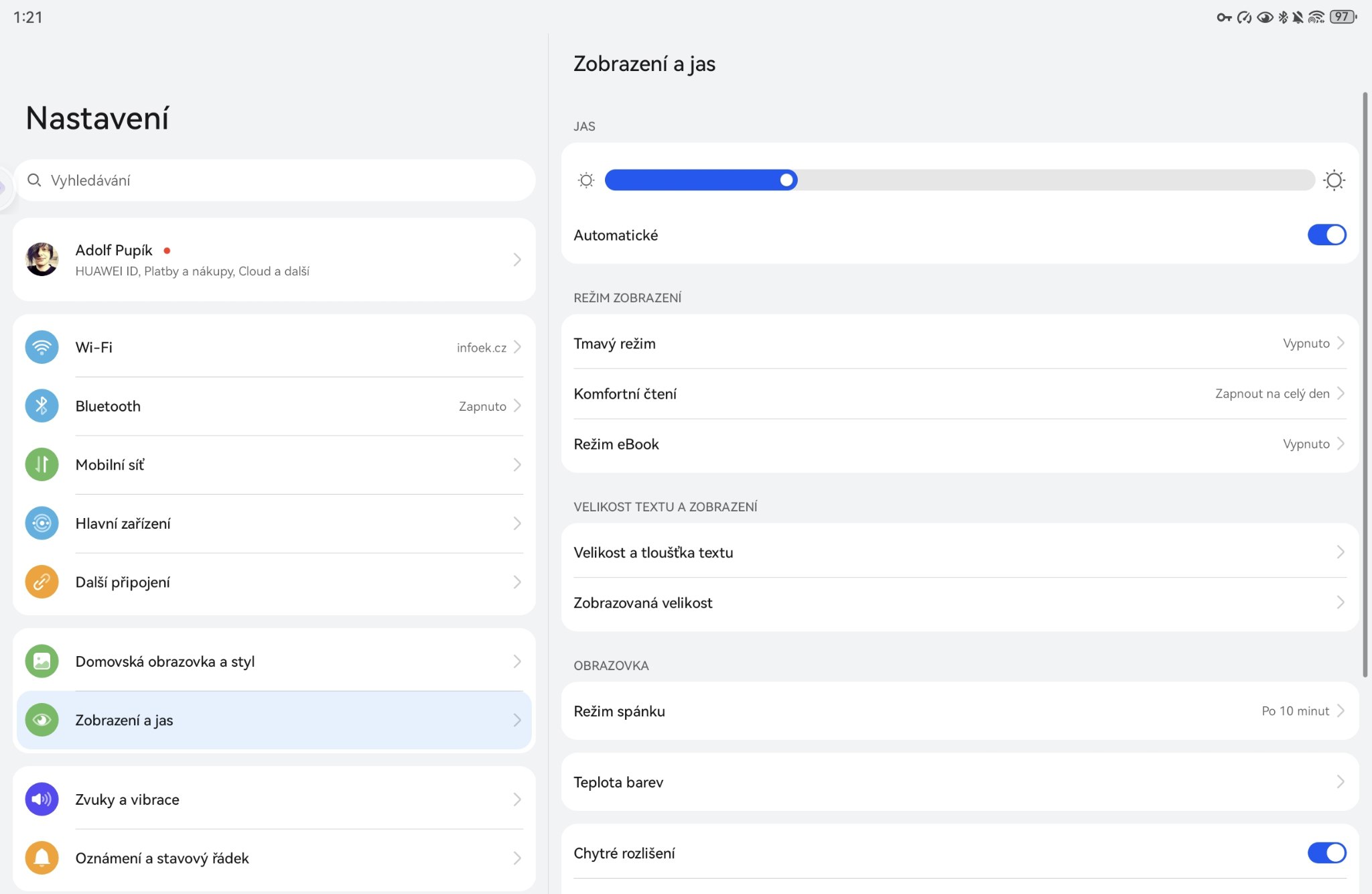 V nabídce tabletu najdete také možnost vytvoření Wi-Fi hotspotu s vlastním názvem a heslem. I když zařízení nemá slot pro nanoSIM kartu, lze přemostit Wi-Fi síť. Tuto funkci občas využívám pro různé experimenty s ADB, bezpečnostními kamerami a podobně. Bez problémů funguje i anonymizace IP adres pomocí VPN, stejně jako bezdrátová projekce obrazu do chytrých televizorů. Máte mobil nebo notebook značky Huawei? Pak můžete využít funkci Huawei Share pro rychlý přenos dat mezi zařízeními nebo třeba pro vyřizování hovorů na MateBooku.