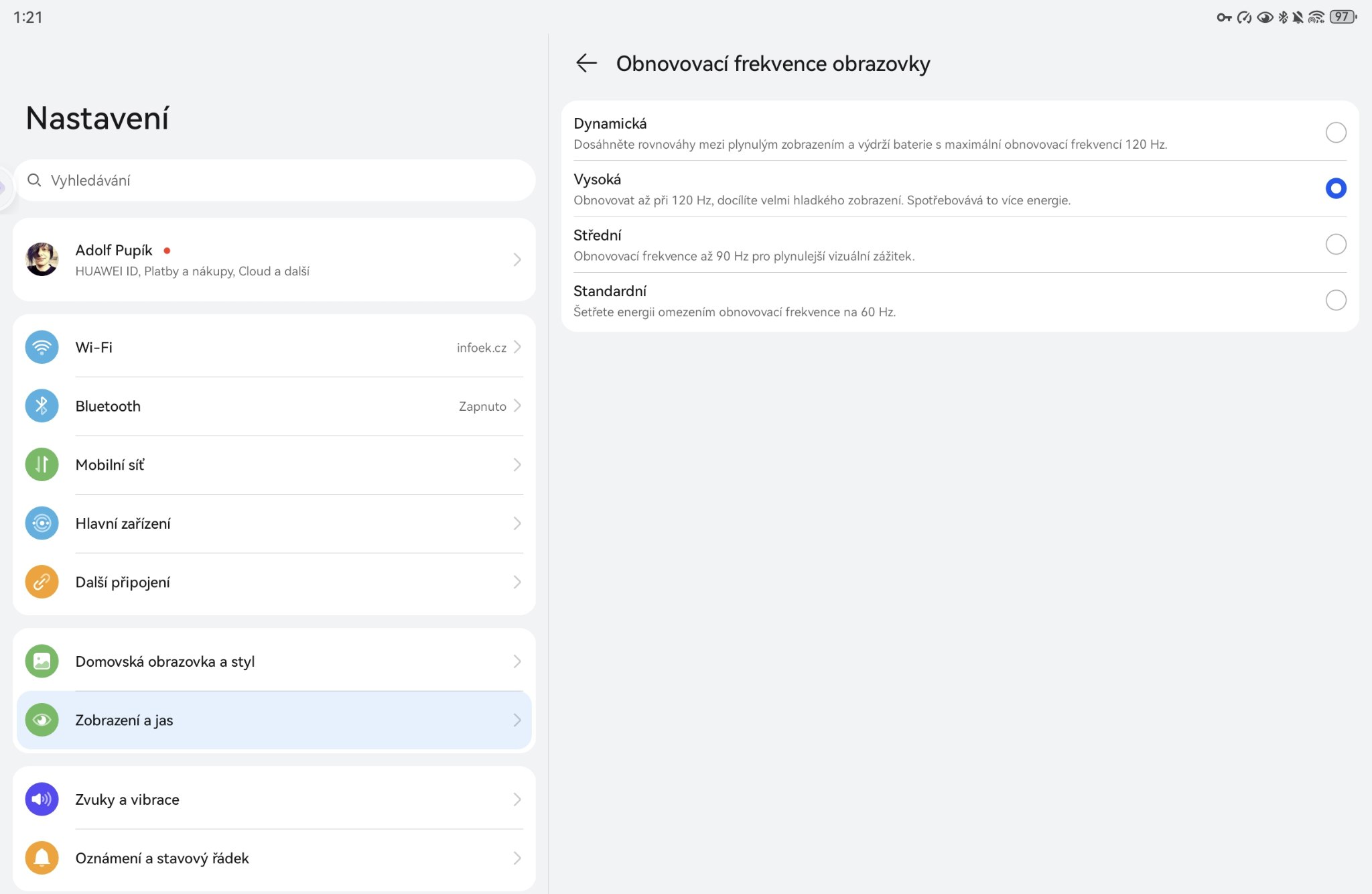 K USB-C konektoru se však ještě vrátím. Dnes už většina lidí zrcadlí obraz z mobilů a tabletů zcela bezdrátově, ale někdo by mohl ocenit i funkci USB-C DisplayPort. Tu například podporoval mobil Huawei Pura 70 Pro, tablet ji však bohužel nemá.