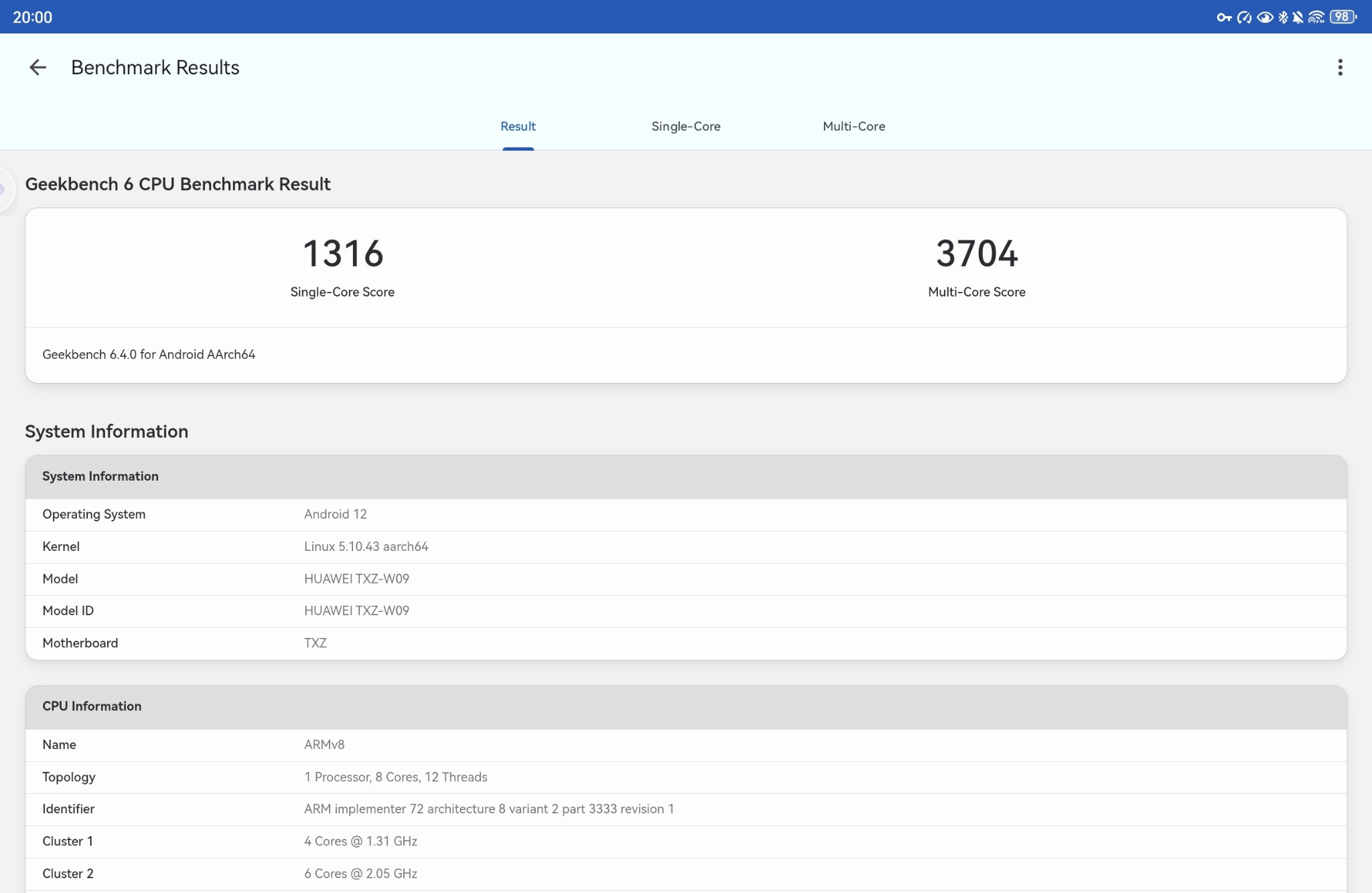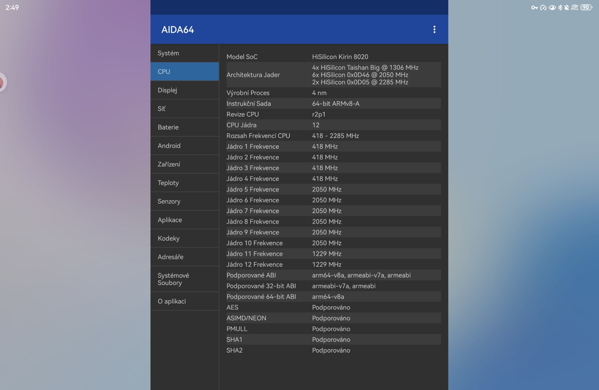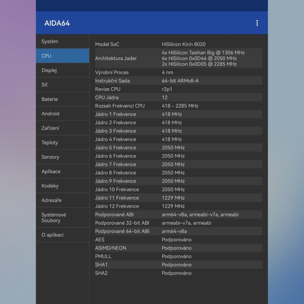 Huawei se roky snaží osamostatnit, což se mu poslední dobou začíná dařit. Do tabletu nasadil vlastní procesor HiSilicon Kirin T82B. Značení čipu je trochu podivné, ale vlastně se jedná o čip Kirin 8020. Má 12 jader a maximální takt 2,29 GHz. Další zmatek panuje kolem faktu o jeho výrobním procesu. Dokonce ho špatně detekují i různé aplikace. Někde narazíte na 4 nebo 5 nm technologii, ale ve skutečnosti se jedná o 7 nm. Není tedy nejmodernější, ale Huawei umí být králem optimalizace a i ze starších technologií dokáže vymáčknout maximum.
