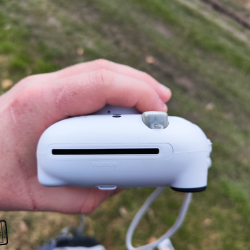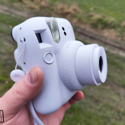 Instax Mini 12 na své předchůdce navazuje designem, ale dle mého názoru je hezčí, než třeba předchozí model Mini 11. Na test jsem obdržel bílou variantu Clay White, ale na našem trhu je fotoaparát k dispozici také ve variantách: Lilac Purple (šeříkově fialová), Mint Green (mátově zelená), Blossom Pink (květinově růžová) a Pastel Blue (pastelově modrá). Výběr je tedy slušný a za barevná provedení výrobce chválím. Celkové rozměry fotoaparátu činí: 104 x 66,6 x 122 mm a bez vložených baterií a popruhu váží 306 gramů.