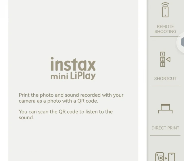 Výrobce si k fotoaparátu připravil také vlastní mobilní aplikaci Instax mini LiPlay pro mobily a tablety se systémy Android a iOS. Spárování s mobilem funguje skvěle, aplikace je přehledná a někomu může vadit jen přítomnost angličtiny. Aplikace umí nahrát zvuk a do fotky vložit malý QR kód pro naskenování a přehrání zvuku. Nahrát tedy můžete nějakou svou myšlenku spojenou se scénou fotografie. Rád vidím také ovládání vzdálené spouště mobilem s náhledem, manuální nastavení fotorámečků do třech tlačítek, možnost základně upravit a vytisknout libovolnou fotku z mobilu a přenést fotky pořízené fotoaparátem do mobilu.
