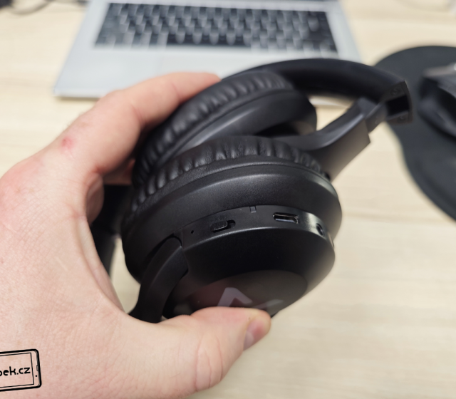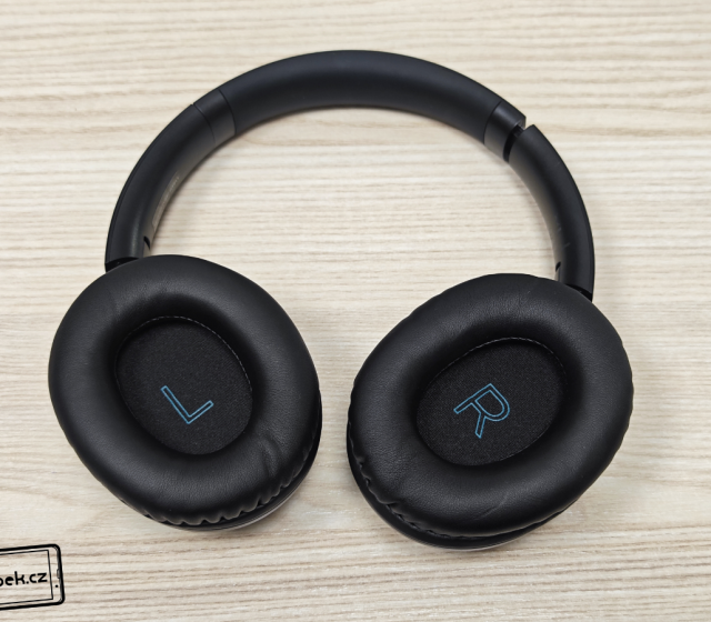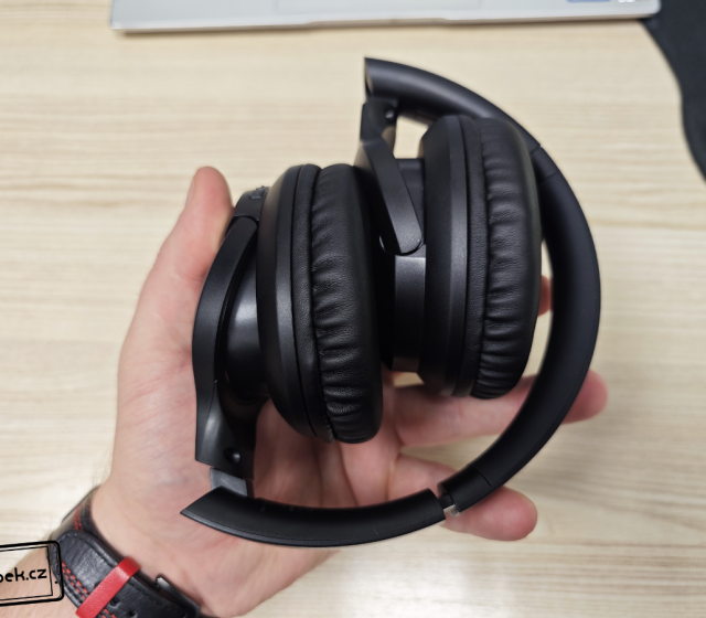 Most přes hlavu má z vnější strany dostatečnou výplň, na hlavě sedí dobře a ani po delším používání netlačil do uší. Je možné ho také roztahovat a mušle z něj vysouvat, aby sluchátka seděla na hlavě každému. Po vysunutí si lze všimnout hliníkového plátu, což u tak dostupných sluchátek není samozřejmé. Je také fajn, že sluchátka nabízí pant pro ohnutí a schování obou mušlí (každého sluchátka) do vnitřní části. Díky tomu se lépe přenáší třeba v batohu a jiných zavazadlech. Mušlemi můžete také otáčet do stran a příjemné jsou i náušníky, které jsou dostatečně velké, aby se do nich vešlo i větší ucho. Jsou příjemné a mají dostatečnou výplň. Obě mušle na sobě z vnější strany mají jen logo výrobce a pravá mušle má ovládací tlačítka, diodu značící zapnutí a nabíjení a samozřejmě USB-C.