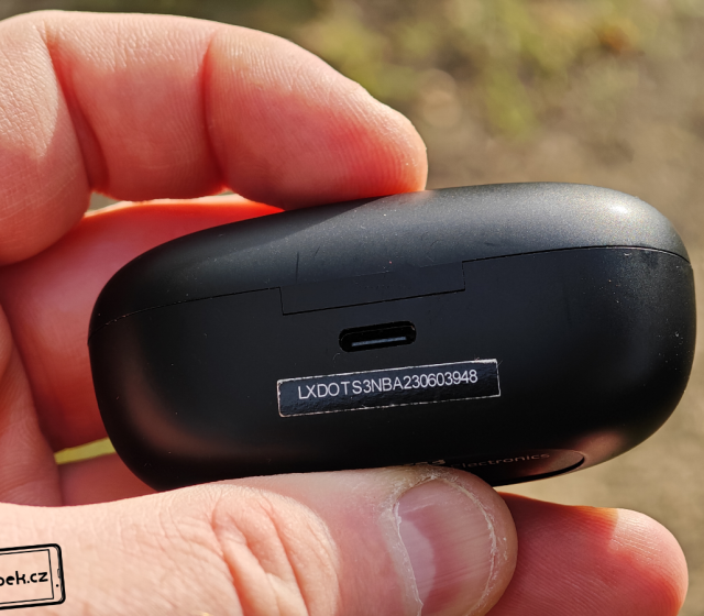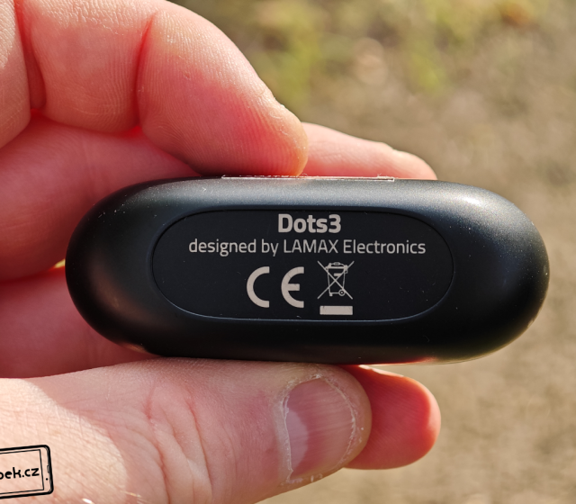 U modelu Dots3 ANC jsem si pochvaloval tvar nabíjecí krabičky. V případě Dots3 je tvar krabičky trochu jiný, ale stále má oblé tvary a bez problémů ji můžete nosit v kapse společně s mobilem. Celkové rozměry krabičky činí: 70 × 27 × 34 mm a společně se sluchátky uvnitř váží pouhých 43 gramů. Horní víko krabičky na sobě nese logo LAMAX. Na čelní části se nachází dioda signalizující nabíjení a výřez pro nehet, aby bylo otevírání víka pohodlné. Samotné víko je zpracováno příkladně a nemělo tendenci se při přenášení v kapse a batohu samovolně otevírat. Zadní část v sobě ukrývá už jen nabíjecí konektor USB-C.