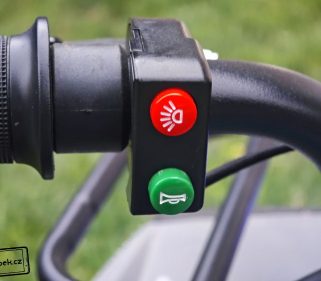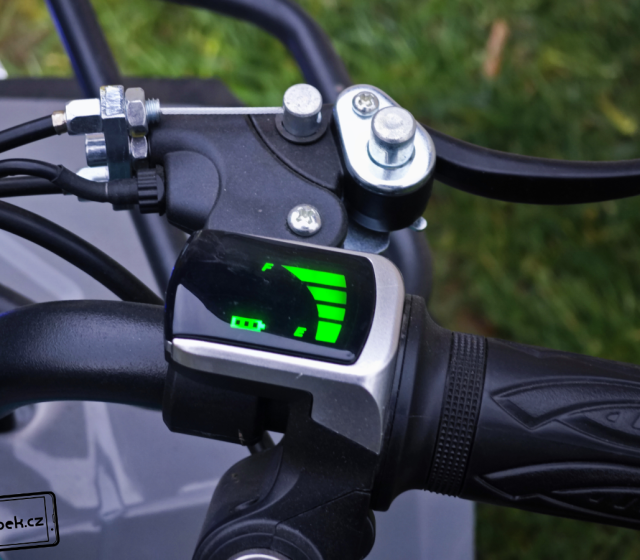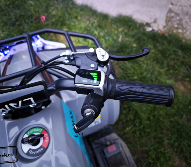 Čtyřkolka LAMAX eTiger ATV50S je opravdu výkonná, a i její konstrukce byla uzpůsobena tomu, aby něco vydržela. Konstrukční zpracování hodnotím jen kladně. Na řídítkách jsou protiskluzové úchyty a pro případ prudkého zabrždění je uprostřed řídítek molitanová část s logem výrobce. To jen pro případ, aby si váš malý závodník nevyrazil zuby nebo neutrpěl jiné nepříjemné bolístky. Doporučuji si také raději pořídit ochrannou helmu. Samozřejmě nechybí ani displej s ukazatelem rychlosti a stavu nabití a klíček pro uvedení čtyřkolky do provozu. Na levé části řídítek je panel s tlačítky pro zapnutí světel a klaksonu. Vše je pěkně na dosah malé ruky.