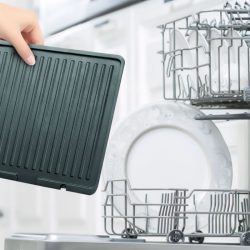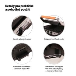 Konstrukční zpracování grilu je výborné a výrobce sáhl především po nerezové oceli. Moc pěkné je designové madlo a gril můžete používat v rozloženém, ale i zavřeném stavu. Maso tedy bude opečeno z obou stran a během testování nebyl problém ani s přípravou tortil. V zavřeném stavu vpravo se nachází i zámek, aby se gril neotevíral a maso bylo pěkně propečené z obou stran. V otevřeném stavu máte k dispozici hezky velké plotýnky, které mají nepřilnavý povrch a jsou vyjímatelné. Snadno je můžete po grilování vyjmout a ručně či v myčce umýt. I mytí v ruce je snadné, což já osobně vidím moc rád.