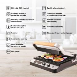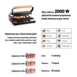 Pod displejem si můžete všimnout také šipek. Ty slouží pro načasování. Už se tedy nestane, že maso či jiné jídlo spálíte. Po jednoduchém načasování budete hlasitě upozorněni, že je čas jídlo zkontrolovat.