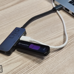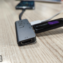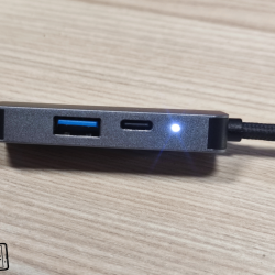 Používat pro různé příslušenství můžete i ještě běžný USB-A 3.2 Gen 1 (5 Gbps). Ten lze používat klidně i pro rychlejší přenos souborů na disk nebo z externích disků do počítače, používat lze i různé dokovací stanice, tiskárny a využití je mnoho. Pak je tu i klasické velké HDMI, díky kterému můžete připojit svůj notebook k monitoru nebo televizoru. Podporuje maximální rozlišení 4K s 60 Hz. To mi také fungovalo skvěle na zařízeních s Windows 11 i různými Linux distribucemi. Na hubu je také bílá dioda značící, že je hub skutečně připojený a připraven k použití.