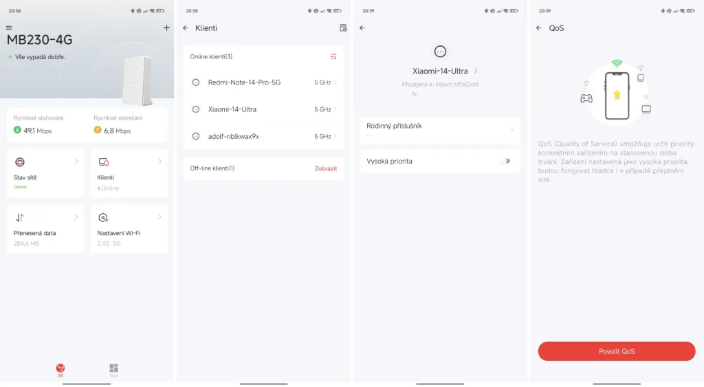 Z mobilní aplikace mám velmi dobrý dojem a líbí se mi její jednoduchost. Velmi spokojený jsem byl i s internetovým připojením a žádné zařízení nemělo s připojením k Wi-Fi 5 a Wi-Fi 4 sítím problém. Po vložení SIM karty se nastaví potřebné nastavení dle českých mobilních operátorů automaticky a není zapotřebí nic zdlouhavě nastavovat. Podporovány jsou mobilní sítě LTE+ a LTE (Cat6 AC1200). Vzhledem k ceně by nikdo nemohl 5G očekávat. Během testování jsem do mobilu vložil svou nanoSIM s neomezeným internetem od T-Mobile a spolehlivě byla síť udržena na LTE+. Nedocházelo k nějakého přeskakování a příjem signálu byl velmi dobrý.