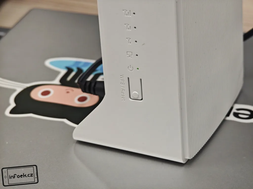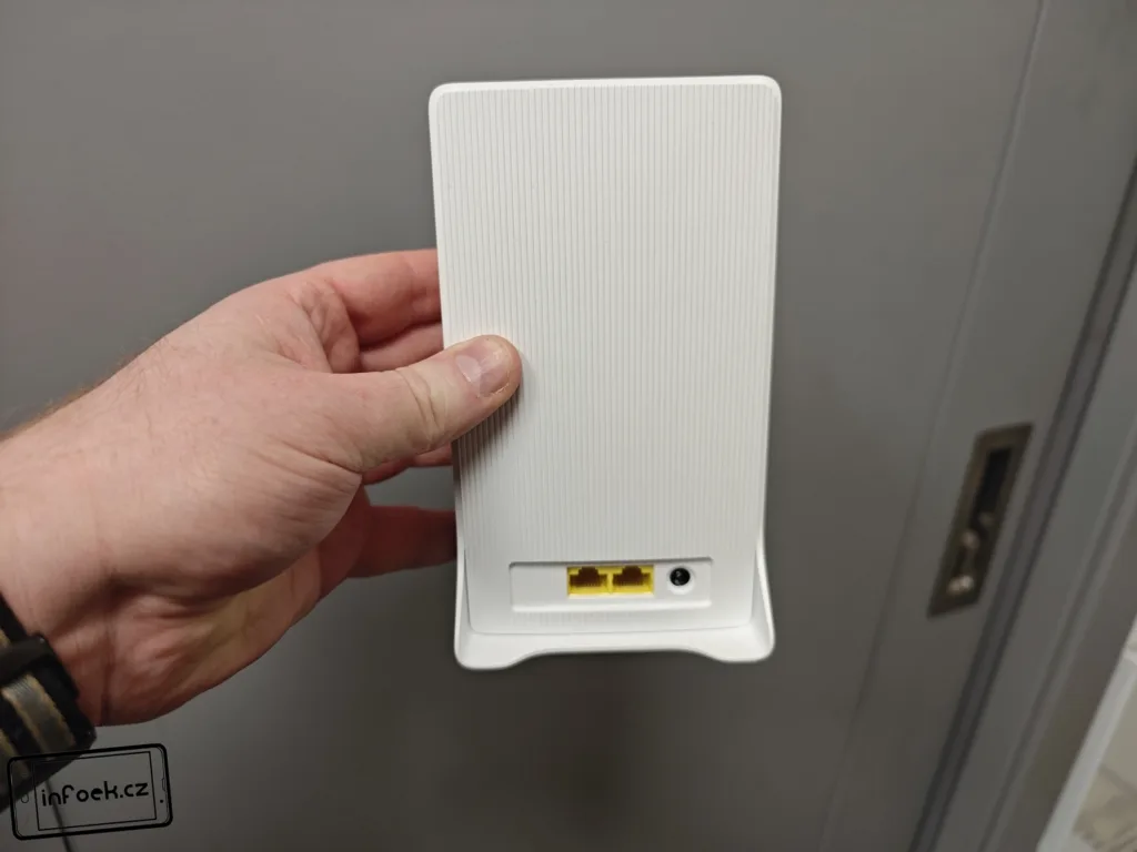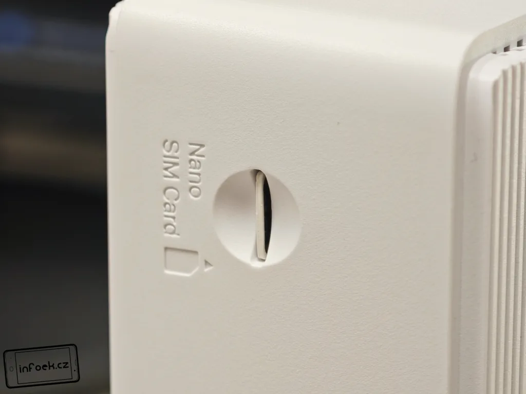 Jedná se o Wi-Fi router a moc lidí jeho design asi řešit nebude. Dostupný je jen v bílém barevném provedení a dle mého názoru vypadá dobře. Výrobce vsadil na jednoduchý design. Z jeho čelní strany má drážkovaný povrch. Levý bok v sobě ukrývá místo pro vložení malé nanoSIM karty a chválím, že pro její vyjímání není zapotřebí hledat otravnou sponu či špendlík. Stačí ji do routeru jednoduše zacvaknout. Všimnout si můžete ještě malých diod značících zapnutí, připojení a sílu signálu. Kdyby vám vadil svit diod, v mobilní aplikaci ho lze zcela vypnout. Zadní část nabízí 2x LAN RJ45, jeden podporuje WAN a k dispozici je ještě napájecí port.