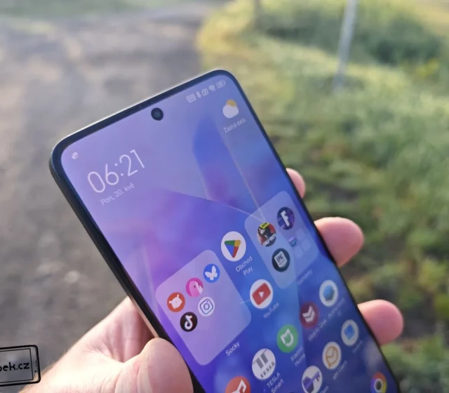 POCO F6 nabízí velký 6,67palcový OLED displej s minimalizací rámečků. Panel má dostatečné rozlišení 2 712 x 1 220 px a ochranné sklo Corning Gorilla Glass Victus. Na něm je již z výroby nalepená fólie, která ho chrání před poškrábáním, ale trochu kazí viditelnost na přímém slunci. Maximální jas je ale vysoký a na přímém slunci jsem mohl mobil běžně používat. Výrobce udává maxiální jas o hodnotě 2 400 nitu. Pochvaloval jsem si také barevné podání displeje a pozorovací úhly.