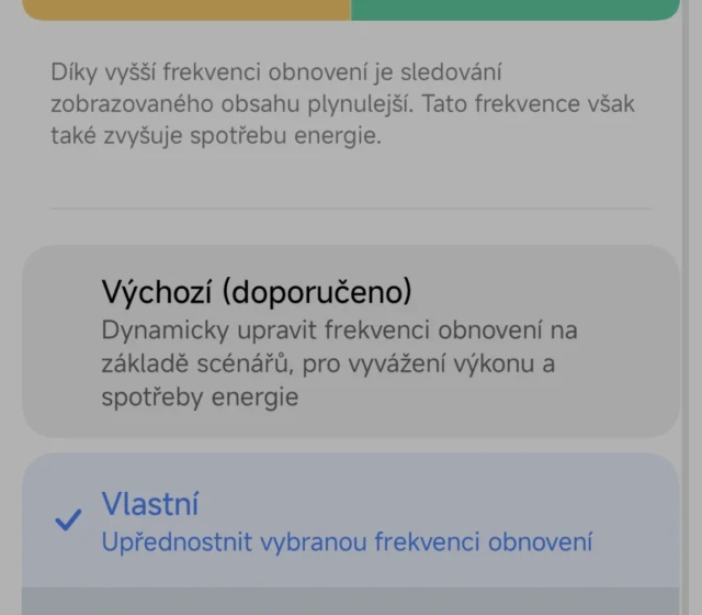 V nastavení telefonu si můžete zapnout automatickou regulaci jasu nebo manuální regulaci s funkcí Sluneční svit. Ta se postará o lepší viditelnost na slunci. K dispozici je také funkce pro vylepšování obrazu, manuální upravení barevného podání displeje, režim pro tlumení modrého světla, funkce pro zlepšení sledování videa, vylepšení HDR a nastavení rychlosti obnovovací frekvence mezi 60 Hz a 120 Hz. Frekvenci si systém umí regulovat dle potřeby, ale já používám neustále 120 Hz.
