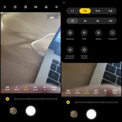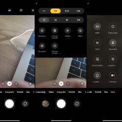 V mobilu se nachází dobře známá mobilní aplikace pro focení. Ta je přehledná, má dostatečně velké ovládací prvky a je svižná. K dispozici je automatické HDR, AI pro nastavení vyvážení barev podle algoritmu a v nastavení je možnost rychlého přepínání poměru stran fotek/rozlišení videa, samospoušť, mřížka a makro pro focení 2 Mpx fotoaparátem. Níže v aplikaci je tradičně trojice tlačítek pro přepínání mezi ultraširokoúhlým (0,6x) a hlavním (1x) fotoaparátem. Pak je i tlačítko pro 2x digitální zoom a tahem prstu po tlačítkách se dostanete až na možnost využít 10x digitální zoom. K dispozici je i pruh režimů, kde je PRO režim pro manuální nastavení parametrů, skenování dokumentů, portrétní režim s rozostřeným pozadím, noční režim, focení v maximálním rozlišení, panorama a další funkce.