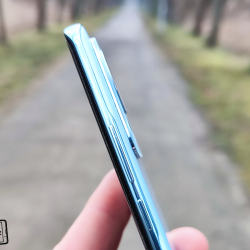 Rám mobilu se v mnou testovaném provedení hezky leskne a působí tedy hliníkovým dojmem. Je však plastový, což mi osobně vůbec nevadí a díky tomu je mobil i lehčí. Na horní části mobilu se nachází infraport pro ovládání domácích spotřebičů, zdířka s mikrofonem a nápis „Dolby Atmos“. Levý bok je zcela prázdný a na pravém boku se nachází ideálně umístěna tlačítka pro regulaci hlasitosti a zamykací tlačítko. Vespod mobilu se ukrývá malý šuplík pro nanoSIM, další zdířka mikrofonu, USB-C konektor a hlasitý reproduktor.