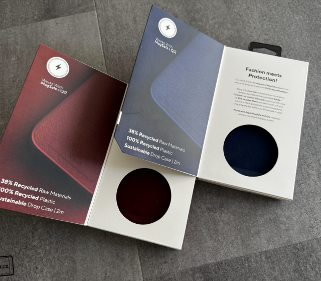 Balení se nese ve stejném duchu jako v předchozích letech. Kryt dostanete v papírové krabičce, která na přední straně nabídne vzorek materiálu. To je trochu k zamyšlení. Nově jsou krabičky otevírací jako kniha a po otevření vás čeká průhled na samotný kryt. Možná tak vzorník na přední části není úplně nutný a nedivil bych se, kdyby s příštími iPhony už na krabičce nebyl. Krabička se honosí použitím recyklovaných materiálů. Stejně jako kryty. O tom ale potom. Po vybalení už vás čeká samotný kryt a není tedy nač čekat, hurá ho narazit na telefon.