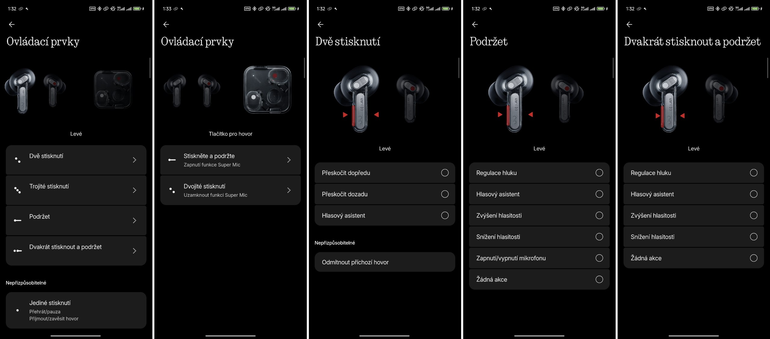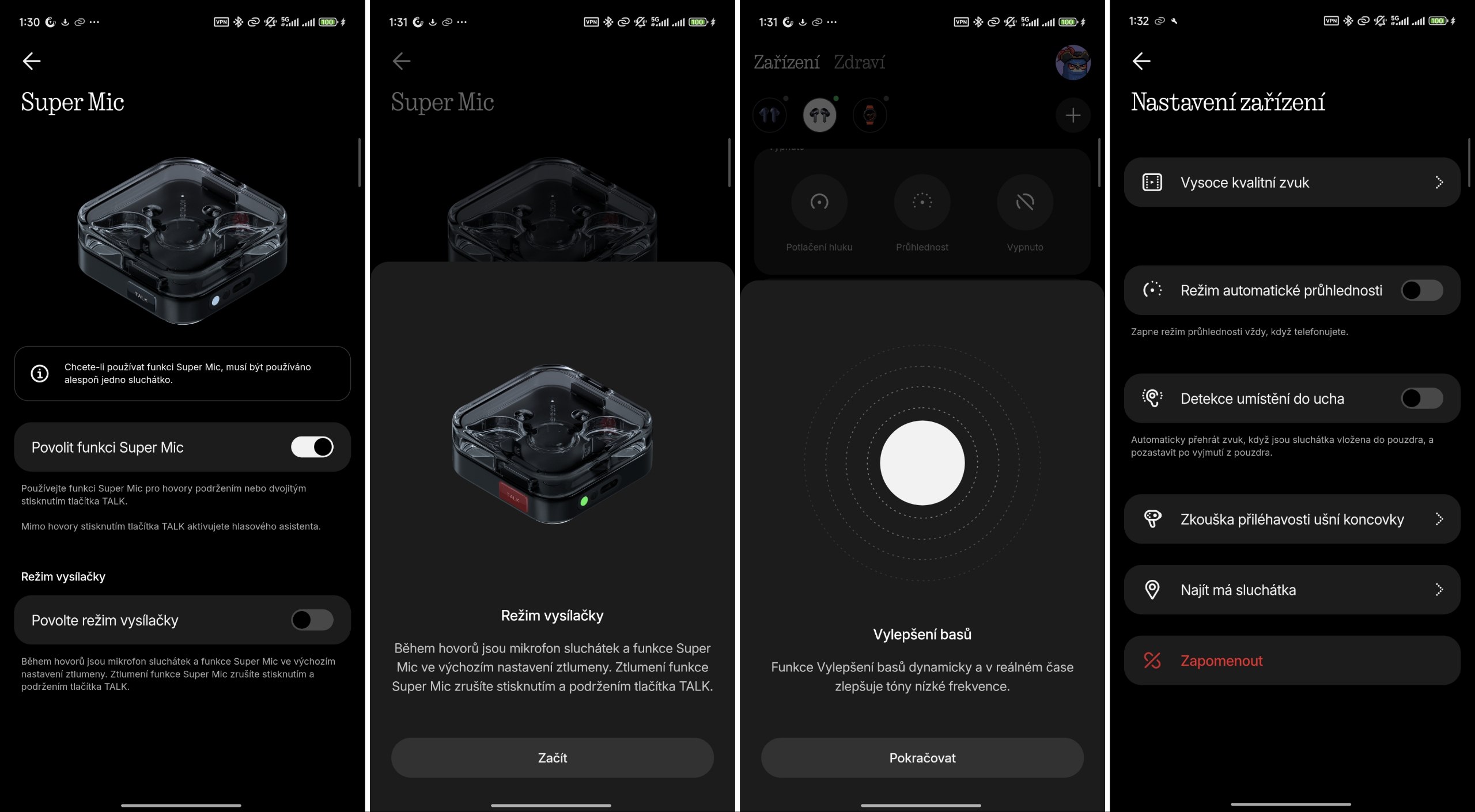 • Kvalitní mikrofony, ANC a transparentní režim