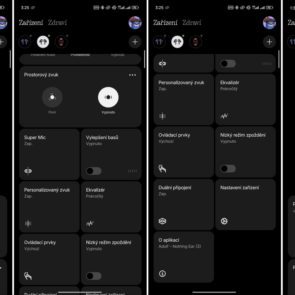 Výrobce nabízí bezplatnou mobilní aplikaci Nothing X určenou pro sluchátka i chytré hodinky. Připojit v ní můžete všechny své produkty značky Nothing a aplikace nabízí přehledné uživatelské prostředí v češtině. Funkce aplikace jsem již popsal výše, takže není třeba je znovu detailně rozebírat.