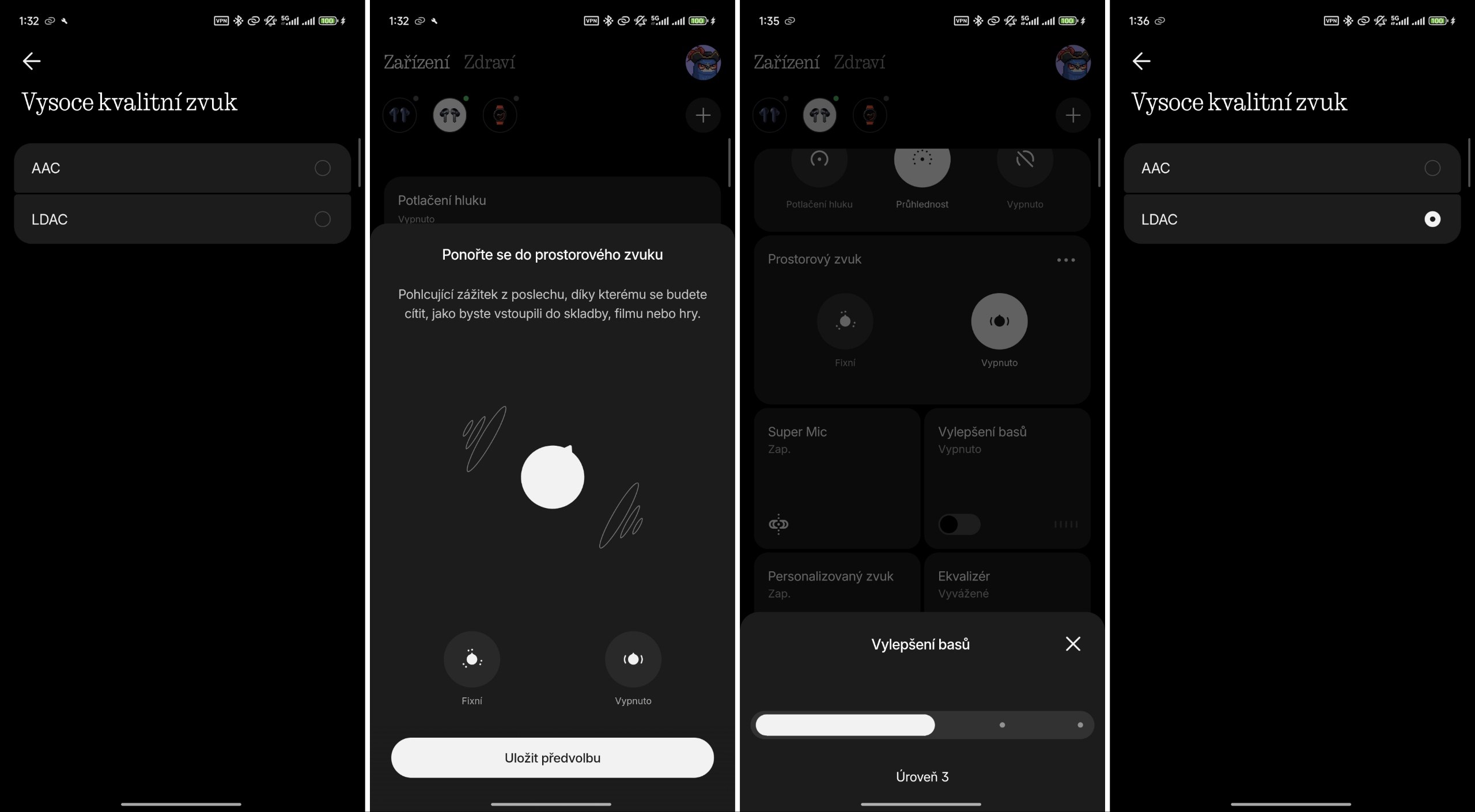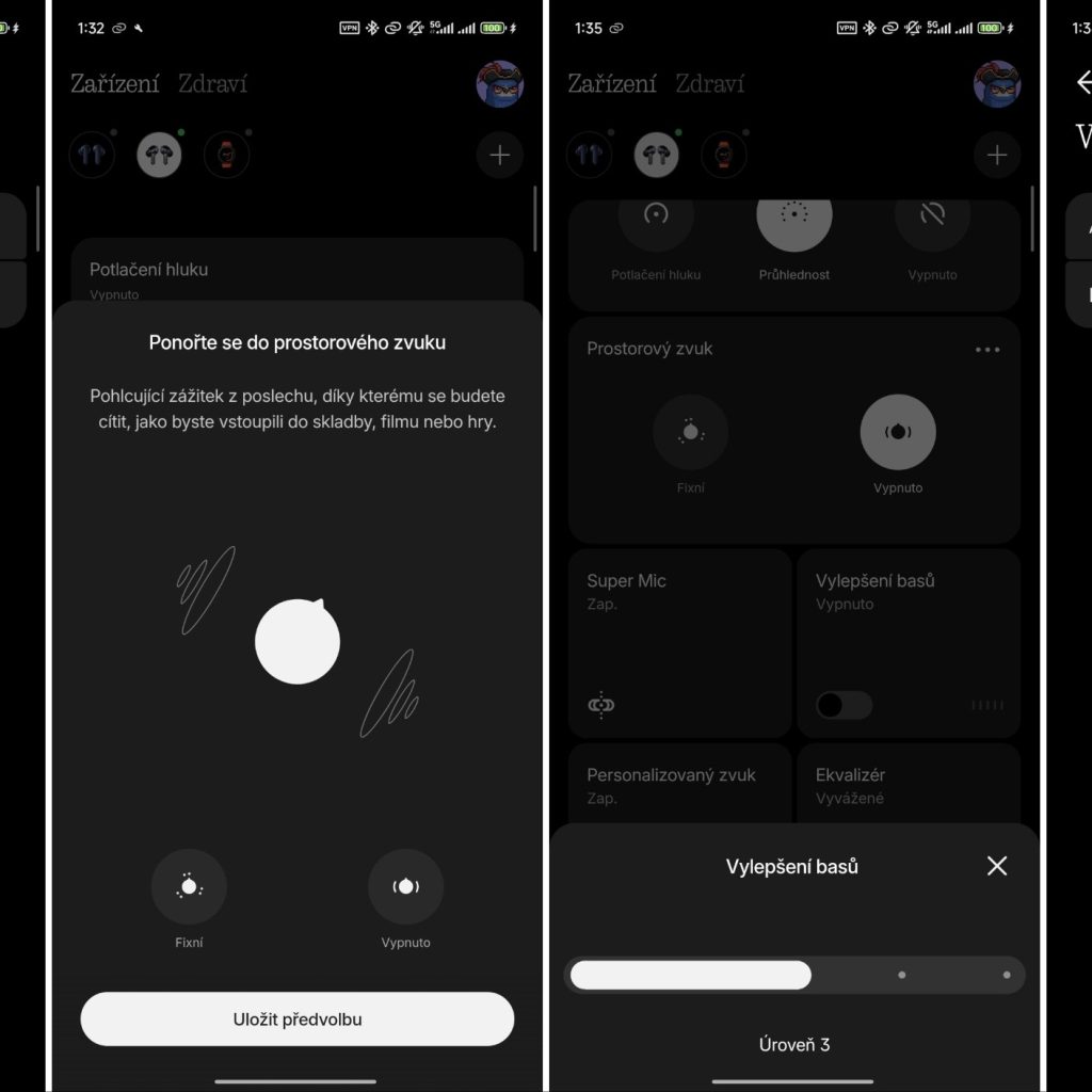 Doporučuji ihned po prvotním párování stáhnout nejnovější firmware a v mobilní aplikaci spustit personalizaci zvuku. Během několika kroků se zvuk přizpůsobí vašim uším a funguje to skvěle. Pokud by někdo chtěl zasáhnout do zvuku detailněji, je k dispozici povedený ekvalizér.
