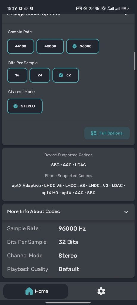 V každém sluchátku se ukrývá 12 mm měnič s frekvenčním rozsahem 20 Hz – 40 kHz a impedancí 32 Ohmů. Výrobce se chlubí kvalitním zvukem a mohu potvrdit přítomnost audio kodeků SBC, AAC a LDAC. V kvalitnějším kodeku LDAC zvládají sluchátka vysokou vzorkovací frekvenci 96 kHz při 32 bitech. To je velmi slušná hodnota a testoval jsem ji s mobily Nothing Phone (3) a Xiaomi 15. Mohu potvrdit, že kodek LDAC nemá žádná omezení závislá na značce mobilu, což je u některých konkurentů běžné. Škoda, že sluchátka nepodporují kodek AptX Adaptive.