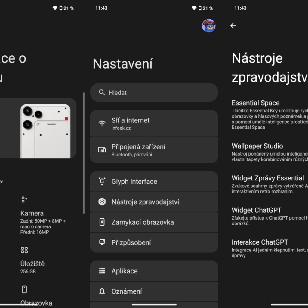 Essential Space je praktická funkce umožňující vkládat do svého prostoru screenshoty a poznámky, které LLM model (AI) analyzuje. Během chvíle vytvoří shrnutí, přeloží text ze screenshotu nebo přepíše hlasovou poznámku do textové podoby. Brzy mobil obdrží aktualizaci na Nothing OS 4.0, která přinese příjemná vylepšení.