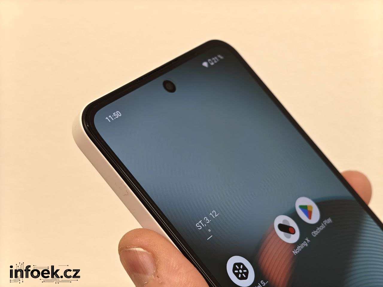 Nothing u tohoto modelu nasadil optický senzor otisků prstů pod OLED displej. Podle mého názoru je jeho umístění ideální – bez sebemenšího problému na něj dosáhnu oběma palci. Odemykání telefonu je rychlé a spolehlivé, a to i přes výrobcem nalepenou ochrannou fólii.