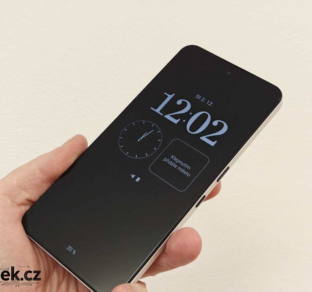 A co Always-On (AoD)? Jde o černou obrazovku po uzamčení telefonu, která zobrazuje čas, datum, stav baterie či oznámení z aplikací. Je smutné, že tato funkce z levnějších modelů často mizí nebo je omezována, ale naštěstí to není případ Nothingu. Pokud chcete, může být obrazovka aktivní stále, nebo ji lze načasovat. Záleží jen na vás.