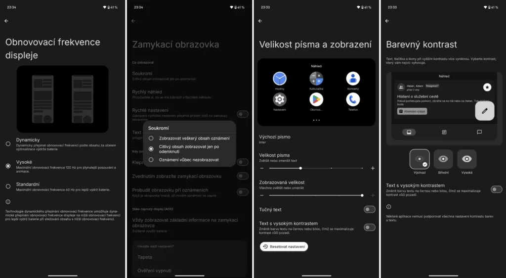 V nastavení si můžete ještě zapnout probuzení zvednutím, upravit velikost textu a prvků v prostředí. Běžně mi vadí výrobci nastavené velikosti všech prvků v prostředí, proto jsem sáhl do vývojářského režimu a nastavil hodnotu minimální šířky na 561. Vše se zmenšilo, díky čemuž mám toho na displeji daleko více a neplýtvá se místem.