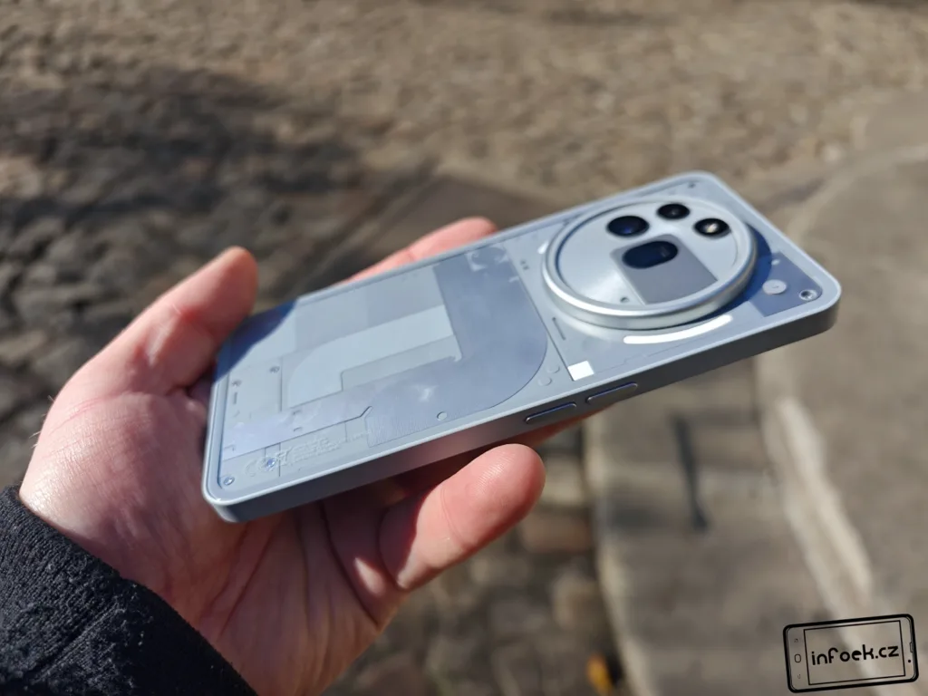 Nothing Phone (3a) Pro se na náš trh oficiálně dostává v šedém a černém barevném provedení. Velmi zajímavá je zadní průhledná část. Vidět lze různé části, a to i trojici LED proužků kolem modulu s fotoaparáty nebo šroubky. Z těla mobilu vystupuje jen větší modul se třemi fotoaparáty a LED bleskem. Jeho strany jsou hezky potaženy hliníkem a v ruce mobil vypadá výrazně lépe, nežli na fotkách a produktových materiálech.