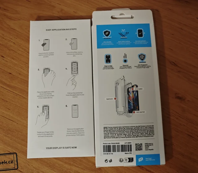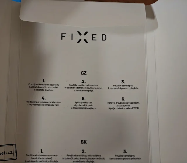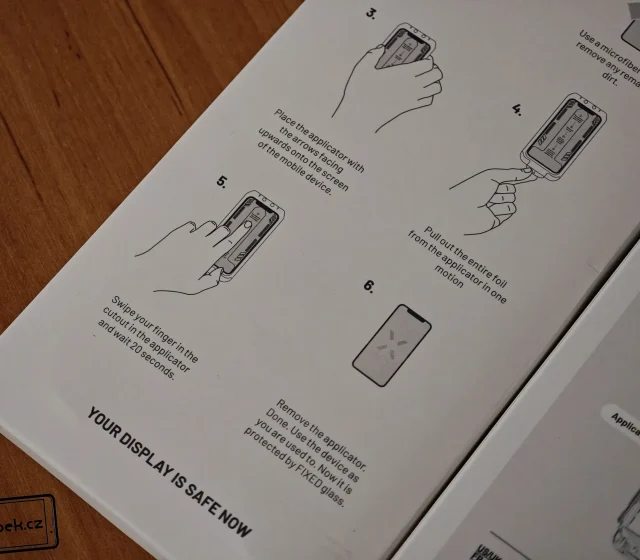 Nová skla FIXED Armor jsou k dispozici v promyšleném balení. V krabičce najdete vše, co budete pro aplikaci skla potřebovat. Opravdu velkou pochvalu si výrobce odnáší za rámeček s ochranou před prachovými částicemi. Právě díky tomuto rámečku je aplikace skla velmi jednoduchá a zvládne to každý. Nechybí k tomu ani ilustrační návody v krabičce.