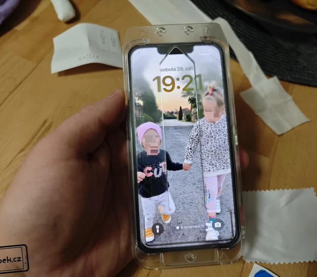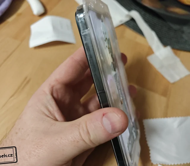 Celý rámeček výborně padne danému modelu iPhonu. Stačí jen odlepit ochrannou fólii a do rámečku očištěný mobil snadno vložit. Poté už jen stačí prstem přejíždět v místech rámečku. Po aplikaci mi jen stačilo ještě vytlačit malé bublinky.
