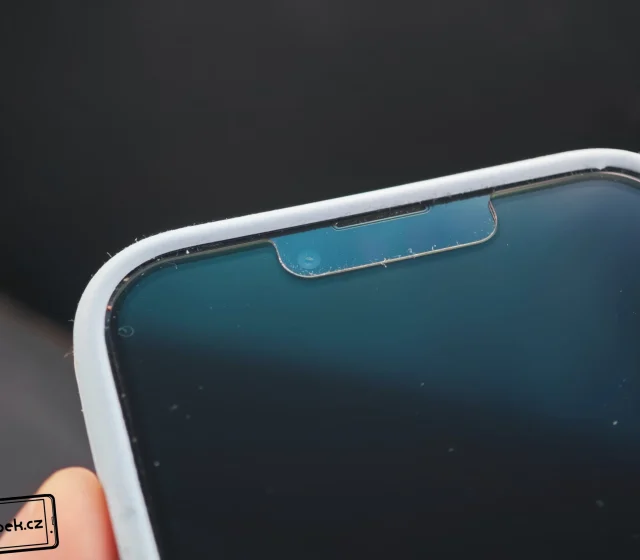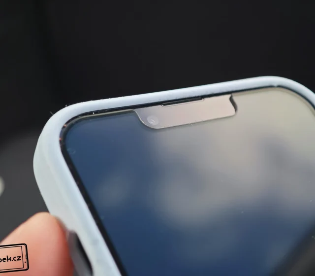 Výrobce se chlubí, že nové sklo je „extra odolné proti prasknutí“. Slibuje o 30 % vyšší pružnost v porovnání s běžnými skly. Po dobu testování neutrpělo sklo žádné oděrky nebo vlasové škrábance. Jeho ochrana je tedy vysoká, ale já musím především pochválit nízké odlesky při používání mobilu v autě pro navigaci. Nemá negativní vliv ani na podání černé barvy displeje a nejsou na něm tolik vidět otisky prstů. Někomu jen může trochu vadit horní výřez pro kamery a senzory Face ID. Výrobce se rozhodl pro výřez, protože pak lépe funguje odemykání mobilu u iPhonu 13. Ve skutečnosti výřez není špatný a do rukou vás nebude nijak řezat.