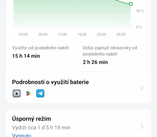 V nastavení baterie se nachází funkce pro vypnutí nabíjení při dosažení 80%. Tím můžete ušetřit nějaký ten nabíjecí cyklus, ale já se odmítám v používání mobilu omezovat. Funkci jsem tedy vypnul a vypnul jsem také funkci „Chytré nabíjení“ pro zpomalení nabíjení. Pokud ale chcete, můžete tyto funkce využívat.