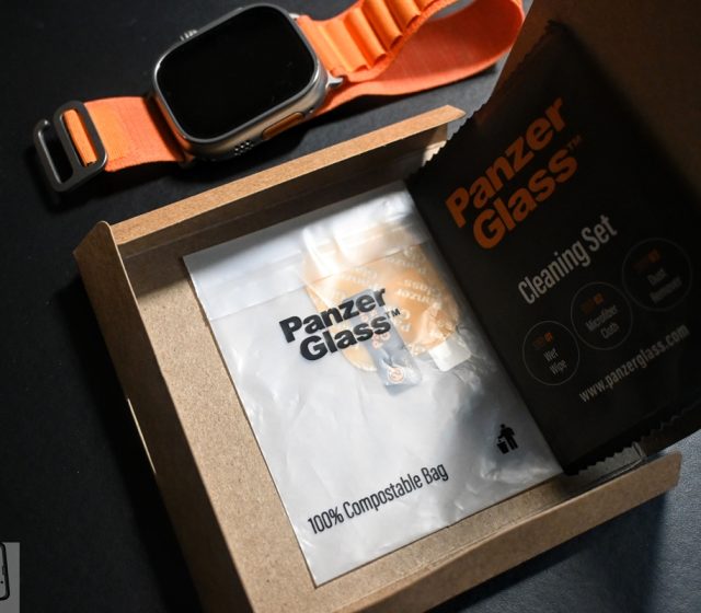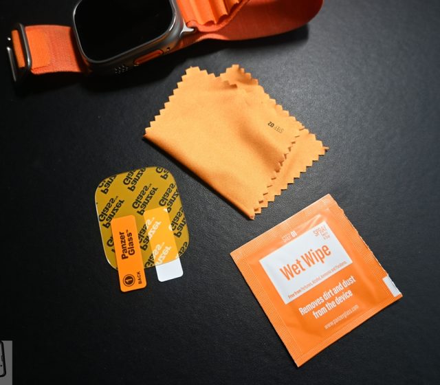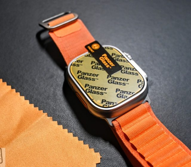Safír z laborky by toho tak jako tak měl snést dost. Někdy ale člověk vyrazí do terénu nebo do práce, kde hodinky nechce zrychtovat na první dobrou, i když jim věří. Jako první se tak nabízí ochranné sklo. Chrání lépe než folie, na dotek je příjemnější a působí lépe i vizuálně. V případě Apple Watch Ultra o něm v podstatě nevíte a navíc to srovná ten drobný výstupek titanového těla. Na ten si řada redaktorů stěžovala, takže by to tímhle mohli vyřešit. Já jsem, co se komfortu používání týče, naprosto v pohodě jak s výstupkem titanu okolo těla, tak s nalepeným sklem. Instalace je otázka pár vteřin. Rozbalit krabičku, použít všechny nabízené propriety, nebýt úplně levý a trefit sklíčko na displej. Opět se vrátím k vystupujícímu titanovému pouzdru nad displej. To vám poslouží jako skvělá vodící pomůcka při lepení. A jak sklo na hodinkách vypadá? Než abych vám to obsáhle popisoval, podívejte se rovnou na fotografie.