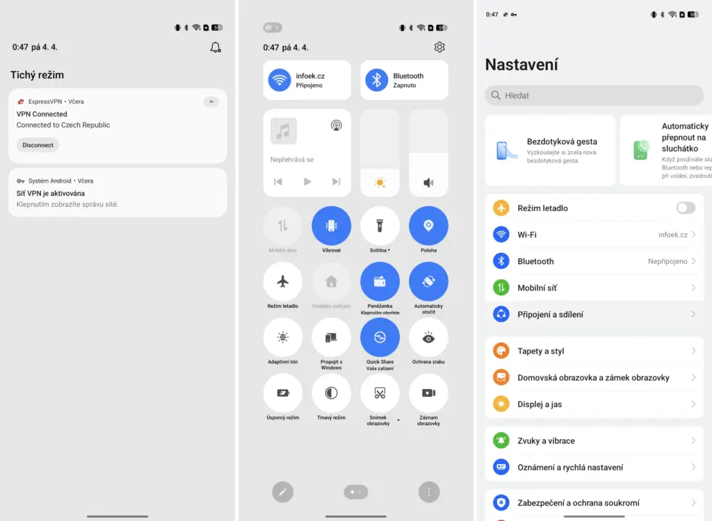 V době psaní této recenze se v mobilu nacházel operační systém Android 15. Výrobce si ho tradičně upravil vlastním uživatelským prostředím realme UI 6.0. Je celé přeloženo do češtiny a podporou důležitým API od Googlu připraveno pro náš trh.