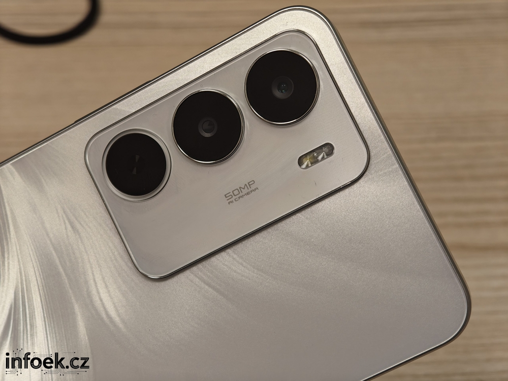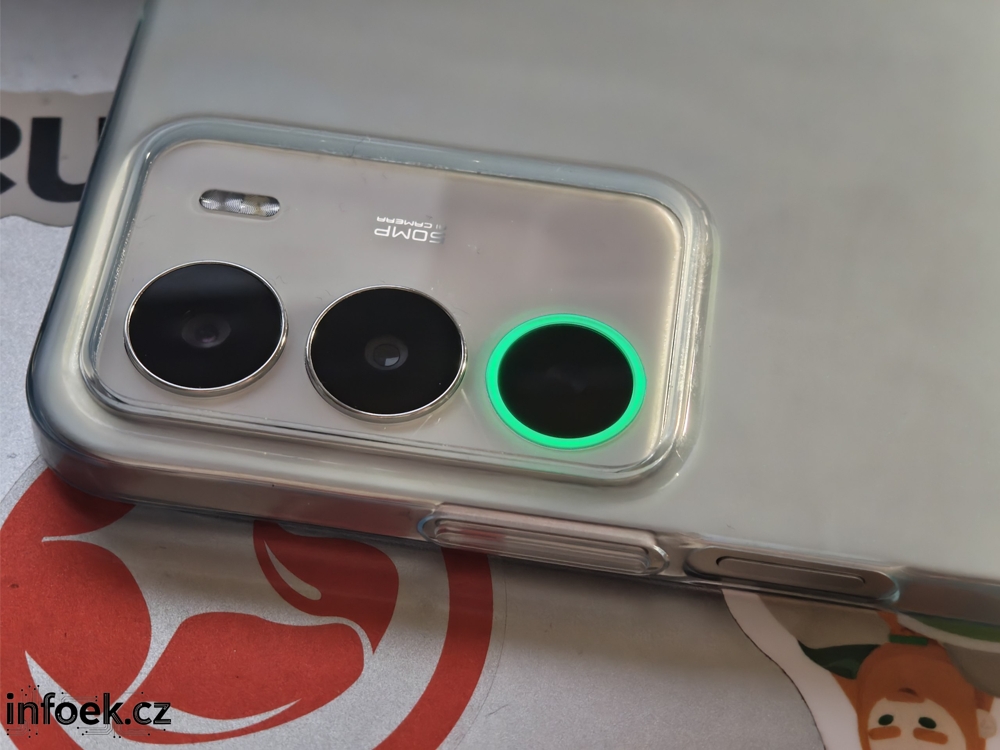 Na první pohled se může zdát, že realme C71 na svých zádech nese tři fotoaparáty. Ve skutečnosti je využitelný pouze jeden, a to ten hlavní s 50 Mpx rozlišením a clonou f/1.8. O druhém se výrobce moc nezmiňuje, ale dle mých testů se jedná pouze o prostorový snímač sloužící pro hloubku ostrosti, což se v praxi projevuje například rozostřením za objektem. Poslední kroužek obsahuje pouze potřebné senzory a kolem něj je podsvícený kroužek značící nabíjení. Dle mého názoru si výrobce mohl druhý fotoaparát zcela odpustit a senzor ve třetím kruhu umístit jinam. Proč nemít jeden kvalitní fotoaparát?