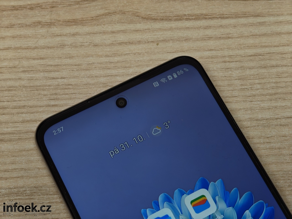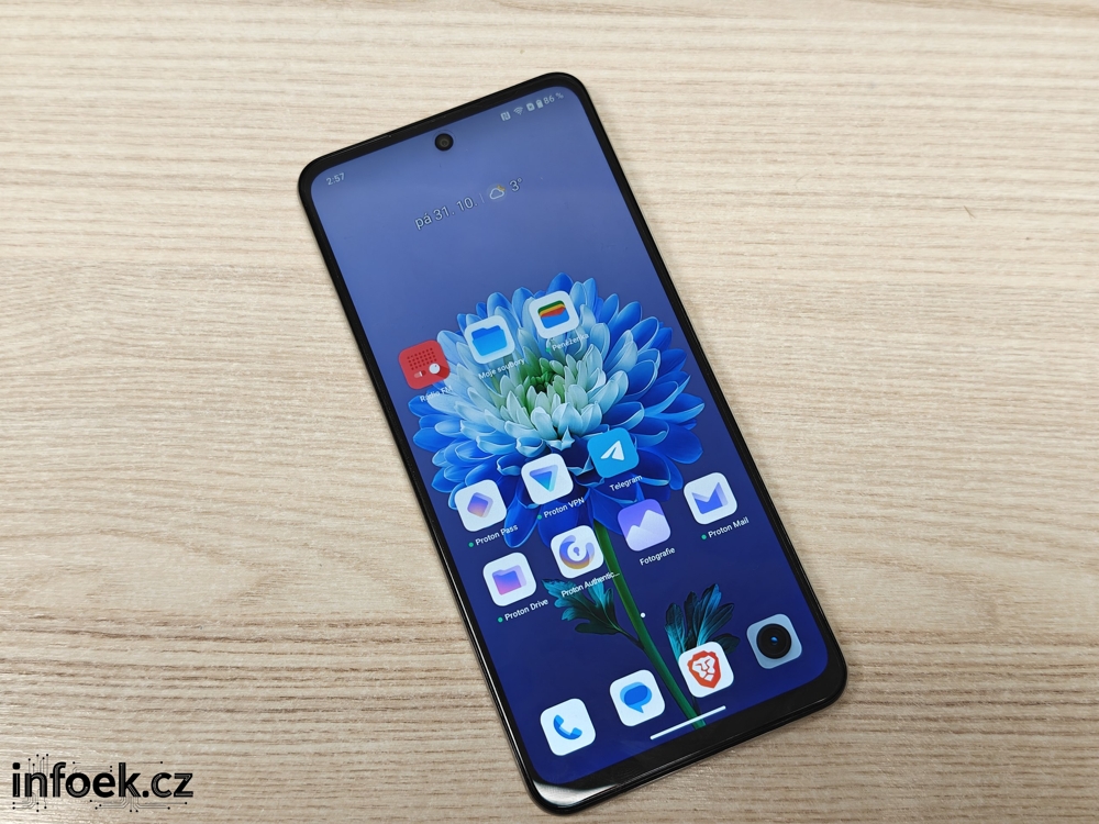 IPS panel není nijak nadprůměrný, ale ani špatný. Barvy jsou v této cenové třídě dobré, pozorovací úhly příkladné, a potěší rychlá 120 Hz obnovovací frekvence. Viditelnost na přímém slunci je dobrá, výrobce uvádí jas až 725 nitů. Nechybí ani senzor okolního světla pro automatickou regulaci jasu.