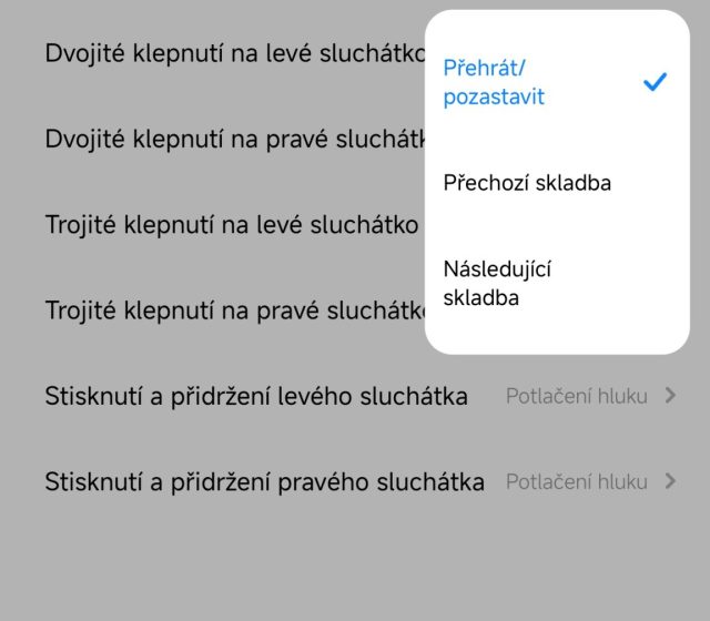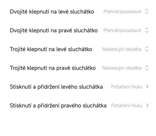 Každé sluchátko na sobě má senzory pro ovládání dotykem. Nachází se z vnější strany nožiček. Gesta v lásce moc nemám, ale výrobce u Redmi Buds 5 ubral na citlivosti senzorů, aby nedocházelo ovládání vlasy. Fungují vlastně dobře a jejich funkcionalitu si mlžete přizpůsobit v mobilní aplikaci, což je rozhodně fajn. Kdyby vám i tak ovládání gesty vadilo, můžete je v mobilní aplikaci zakázat.