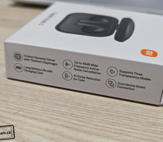 Uvnitř nabíjecí krabičky se ukrývá akumulátor o kapacitě 480 mAh a každé sluchátko má akumulátor o kapacitě 54 mAh. Výrobce udává, že sluchátka společně s nabíjecí krabičkou vydrží až 40 hodin. Poslední dva roky jsem vypozoroval, že dobré výdrži u sluchátek přidává právě novější Bluetooth 5.3, které tato sluchátka mají.