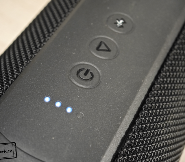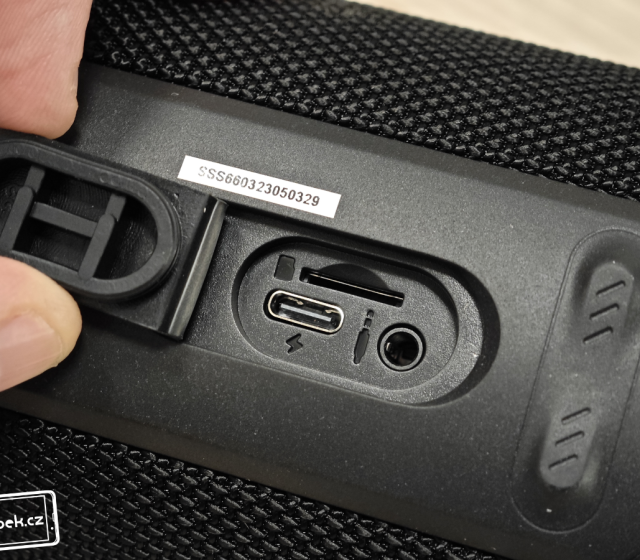 Uvnitř reproduktoru se nachází akumulátor o kapacitě 5000 mAh. Zajistí výdrž na jedno nabití až 8 hodin při používání hlasitosti na 50 %. Při hlasitějším poslechu samozřejmě bude výdrž nižší. Záleží jen a pouze na vašem použití a bez problémů mi vydržel 5 hodin na jedno nabití při náročnějším použití. Nabíjení pak probíhá skrze USB-C konektor, během nabíjení je možné reproduktor používat a z úplného vybití do 100 % stavu se na bije přibližně do 3 a půl hodiny. Nabíjení nejrychlejší tedy není, ale za ty peníze bych nějaké bleskové nabíjení ani neočekával.