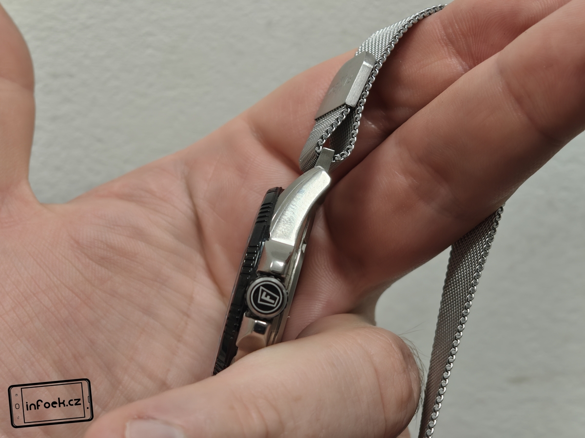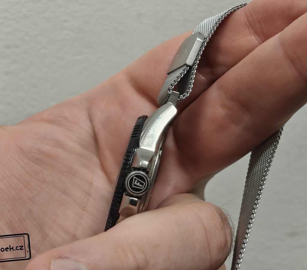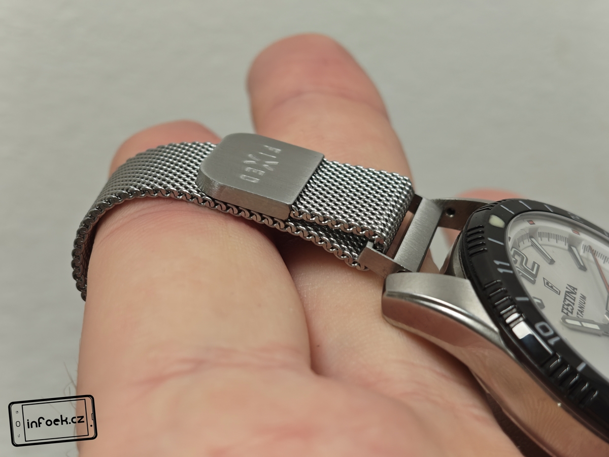 Někoho může zpočátku zaskočit magnetické zapínání, ale v praxi je velmi silné a během spánku či rychlé jízdy na koloběžce nedošlo k odepnutí. I kdyby se to přece jen stalo, hodinky zůstanou na ruce díky provlečenému očku. Toto řešení navíc umožňuje rychlou úpravu velikosti pro různé zápěstí, zatímco u běžných milánských tahů bývá nastavování složitější a často vyžaduje šroubováček či jiný nástroj.