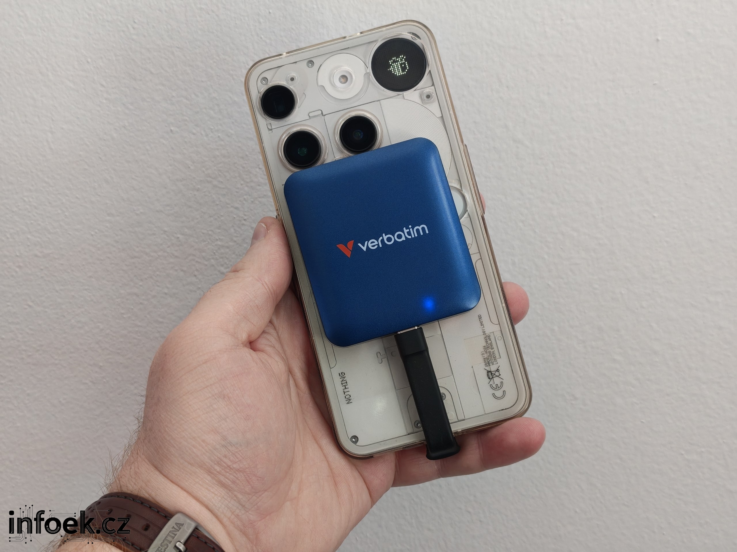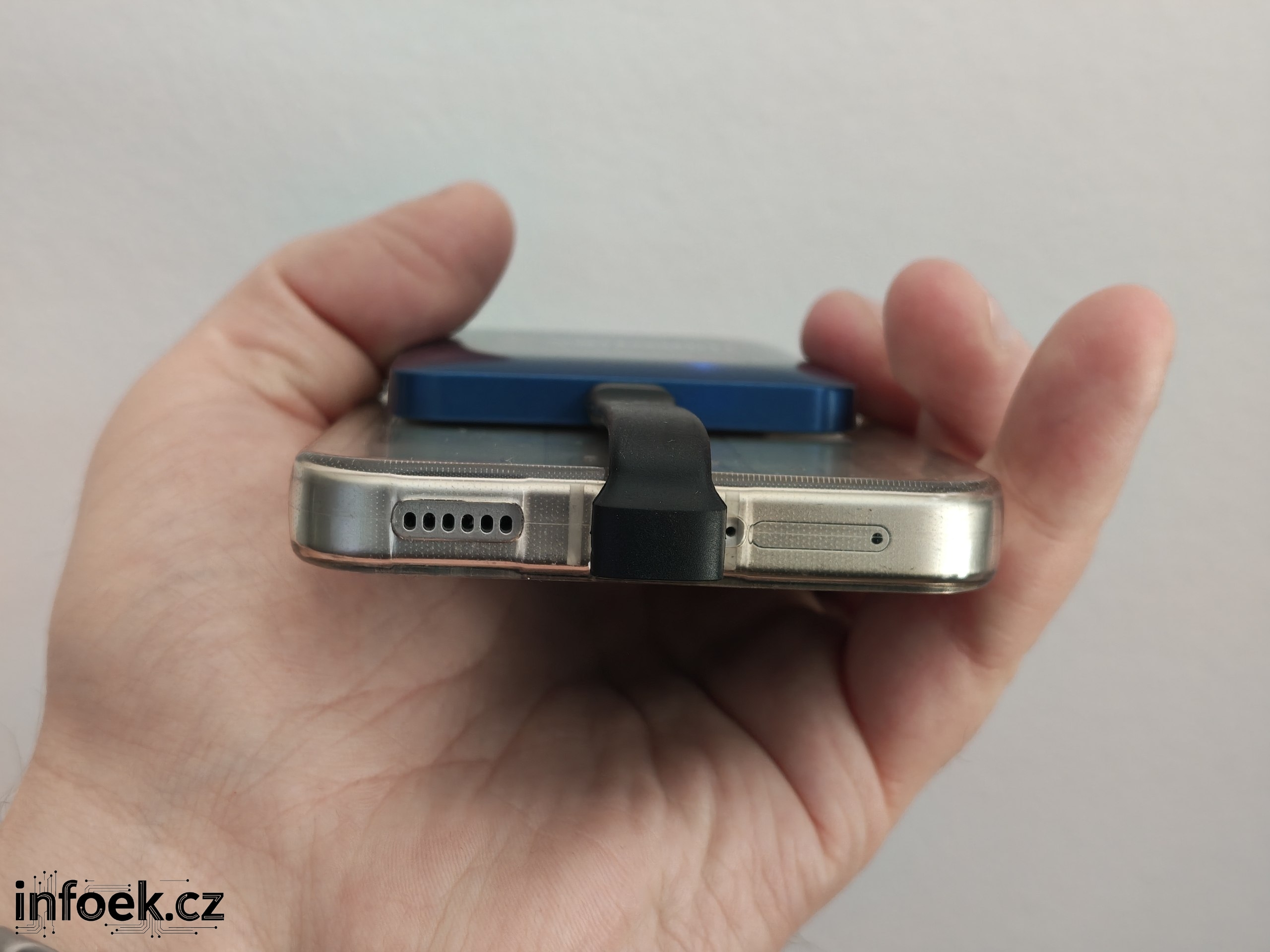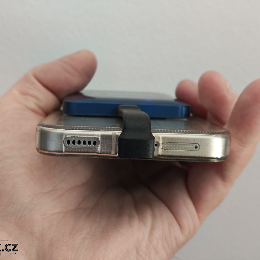 Síla použitých magnetů je příkladná a ve všech případech držel pevně na zádech různých mobilů. U mobilů s masivními moduly fotoaparátů však můžete narážet na problém s uchycením. V takovém případě bych si dokoupil kratší kabel, aby bylo možné disk pohodlně uchytit trochu níž pod modul. K tomu bude zapotřebí si případně dokoupit kratší kabel.