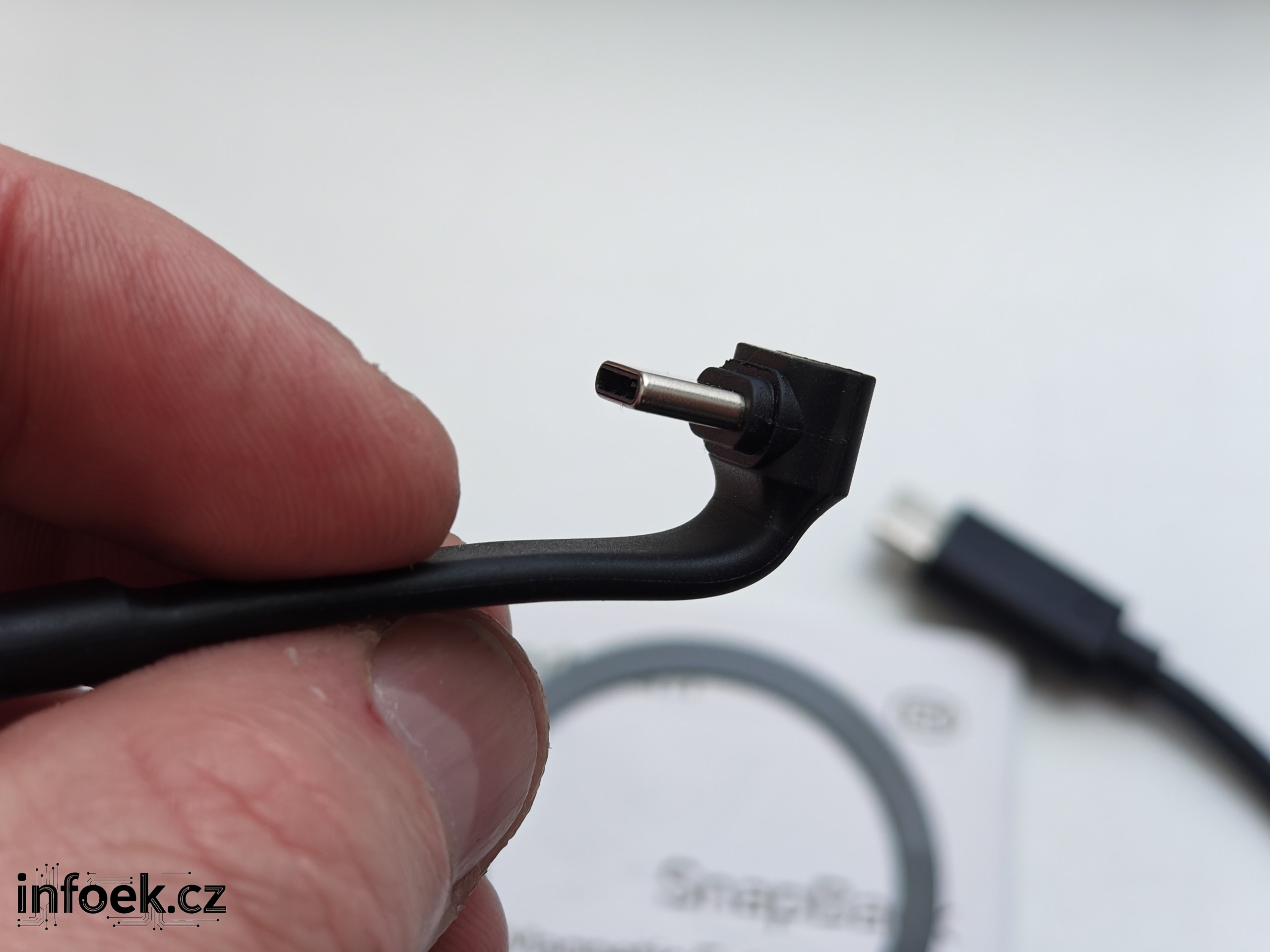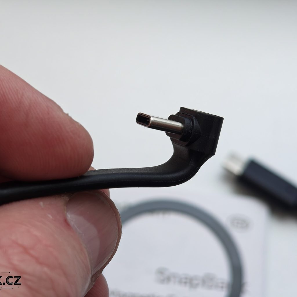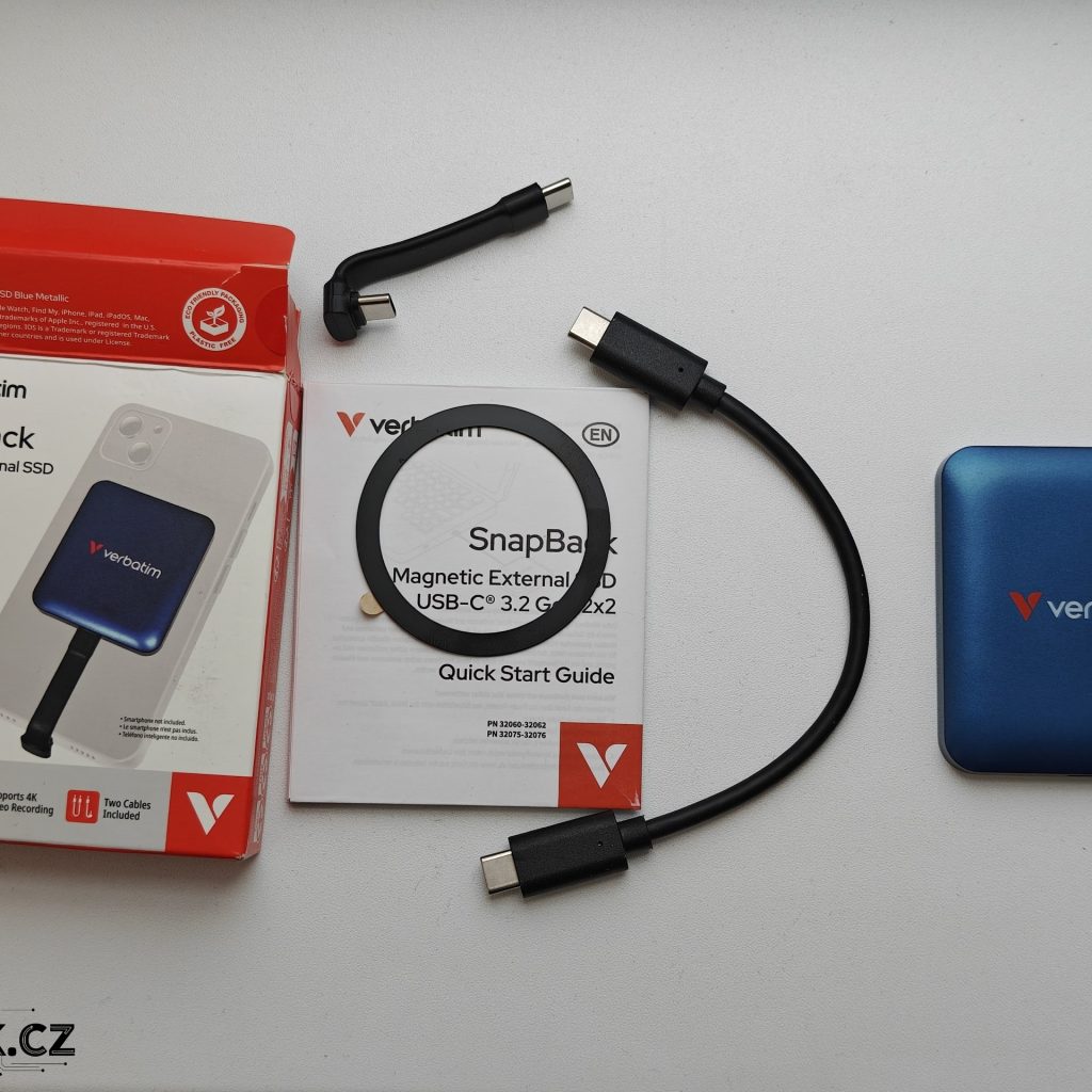 V malé krabičce k disku dostanete dvojici krátkých kabelů USB-C na USB-C. Oba jsou kvalitní a pro používání s mobilem oceníte především ten s možností ohýbání. Výrobce chválím ještě za přiložení magnetického kroužku, aby disk mohl používat každý.