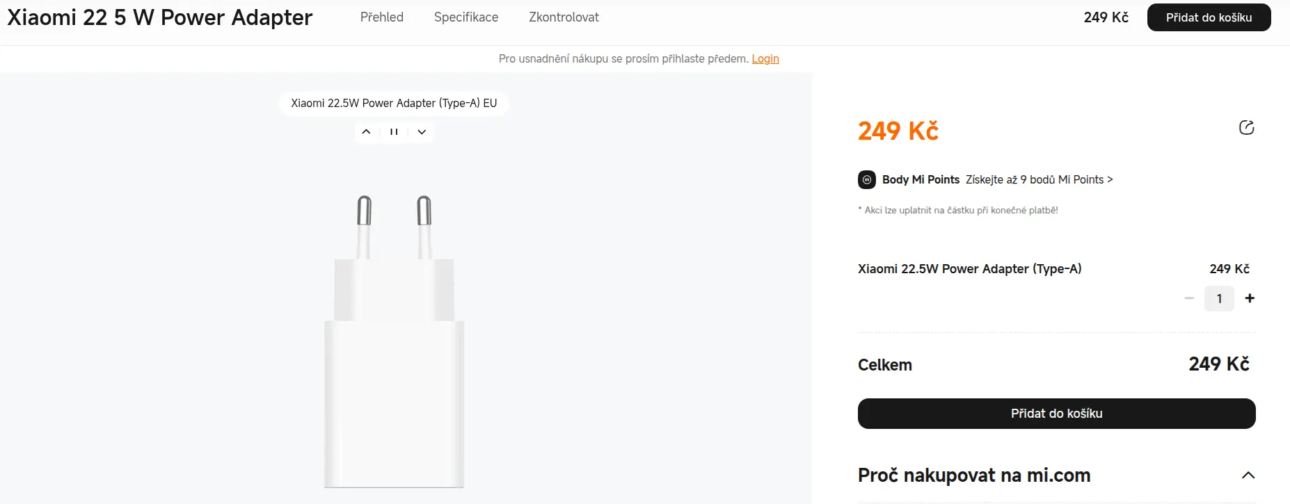 V prodejním balení sice je USB-A na USB-C nabíjecí/datový kabel, adaptér však bohužel chybí. Již začátkem recenze jsem zmínil, že za to mohou nařízení EU. Pokud však k novému tabletu chcete nový a ideálně originální adaptér, můžete sáhnout po 22.5 W adaptéru v oficiálním e-shopu Xiaomi. V době psaní recenze se tam prodával za 249 Kč s DPH a připojit do něj můžete kabel z prodejního balení.