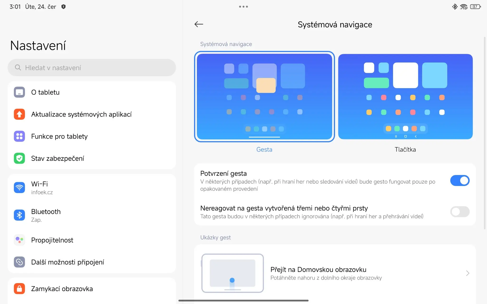V tomto cenovém segmentu nelze očekávat přítomnost čtečky otisků prstů. Po aktivaci PINU či třeba gesta můžete nastavit odemykání tabletu obličejem. Uložit můžete hned dva obličeje, díky čemuž můžete tablet rychle odemykat nejen vy, ale třeba nějaký člen rodiny.