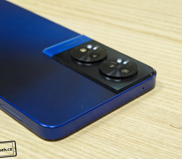 Na test jsem obdržel mobil v pěkném modrém provedení Midnight Blue, ale vybrat si můžete i světlé provedení Opalescent. Řekl bych, že zadní modrý kryt je plastový a jedná se o výbornou imitaci skla. Kryt má matný povrch, díky čemuž na zádech mobilu nejsou vidět otisky prstů. Ze zad mobilu vystupují jen dva moduly s fotoaparáty a LED bleskem.