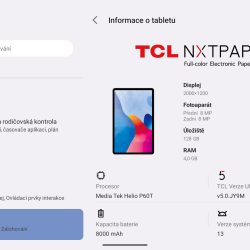 TCL NXTPAPER 11 v době psaní recenze měl operační systém Android 13. Výrobce TCL jej upravil svou nadstavbou TCL UI 5.0, která je celá přeložena do češtiny, má všechny potřebné Google služby a její ovládání je velmi příjemné. Během prvotního startu tabletu i v nastavení si můžete vybrat, zda chcete systém tabletu ovládat moderními gesty, ale stále je i stará možnost prostředí ovládat třemi tlačítky vespod displeje.