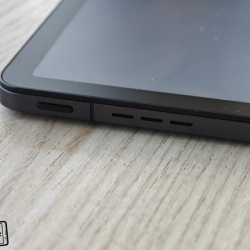 Horní část tabletu nabízí tlačítka pro regulaci hlasitosti, zdířky mikrofonů a ukrývá i slot pro paměťové karty. Levý bok má zamykací/vypínací tlačítko a výdechy dvou reproduktorů. Pravý bok má další dvojici hlasitých reproduktorů a nabíjecí konektor USB-C. Spodek je zcela prázdný.