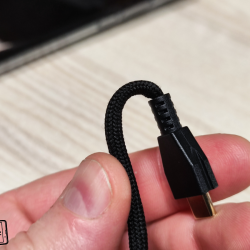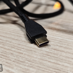 V myši se nachází integrovaný akumulátor, takže do ní nemusíte vkládat žádné baterie. K nabíjení slouží USB-C konektor a v prodejním balení je dostatečně dlouhý USB-A na USB-C kabel. Ten je navíc pletený a myš lze během nabíjení používat i drátově. Pokud si potrpíte na hraní her s kabelem, tak s touto myší to není žádný problém. Trochu mi ale vadí okolí konektoru, protože nelze použít jakýkoliv USB-C kabel. Kvůli plastové úpravě kolem konektoru se do myši vejde kabel z prodejního balení, ale už ne třeba kabel od mobilu. Nepostrádá tedy jednotný konektor pro všechna zařízení trochu smysl? Žíly mi tento drobný nedostatek sice netrhá, ale je škoda, že myš nelze nabít i nějakým jiným kabelem.