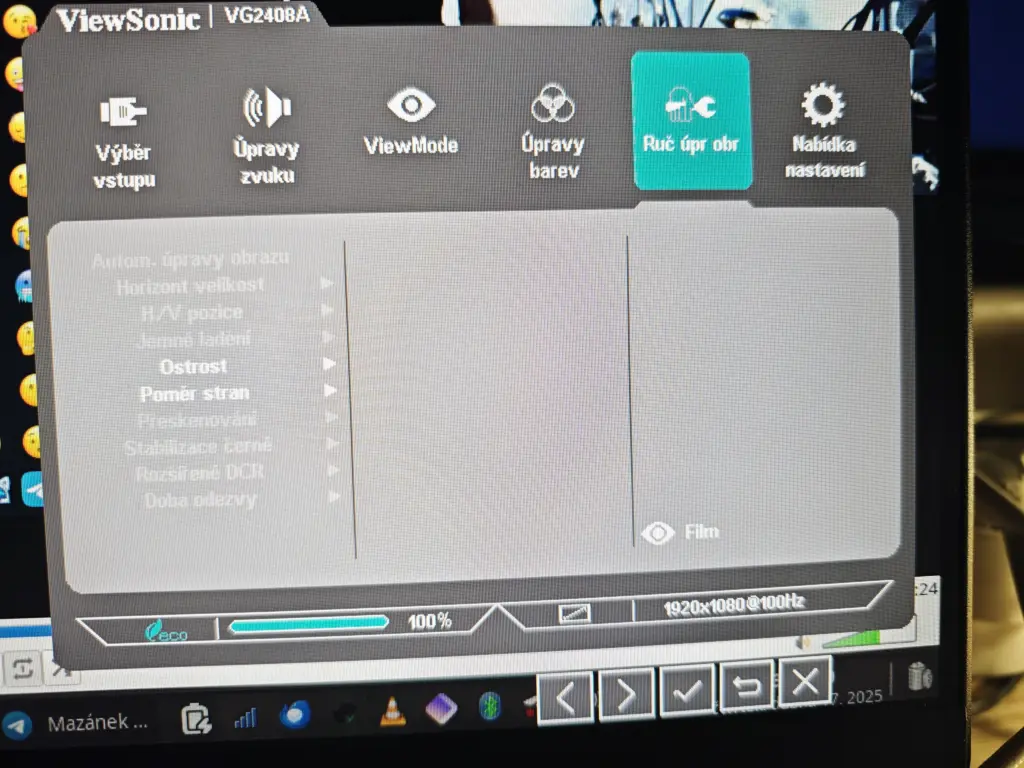 Vespod jsou ještě tlačítka a můžete je snadno nahmatat, jelikož jsou fyzická, nikoliv senzorová. Můžete pomocí nich rychle přepínat režimy zobrazení – herní, filmový, práce s textem, mono a další. Dostat se můžete pro ViewSonic typického uživatelského prostředí, nastavit si v něm češtinu a obraz si podrobněji přizpůsobit podle sebe. Prostředí je svižné a vlastně mi v něm vůbec nic nechybí.